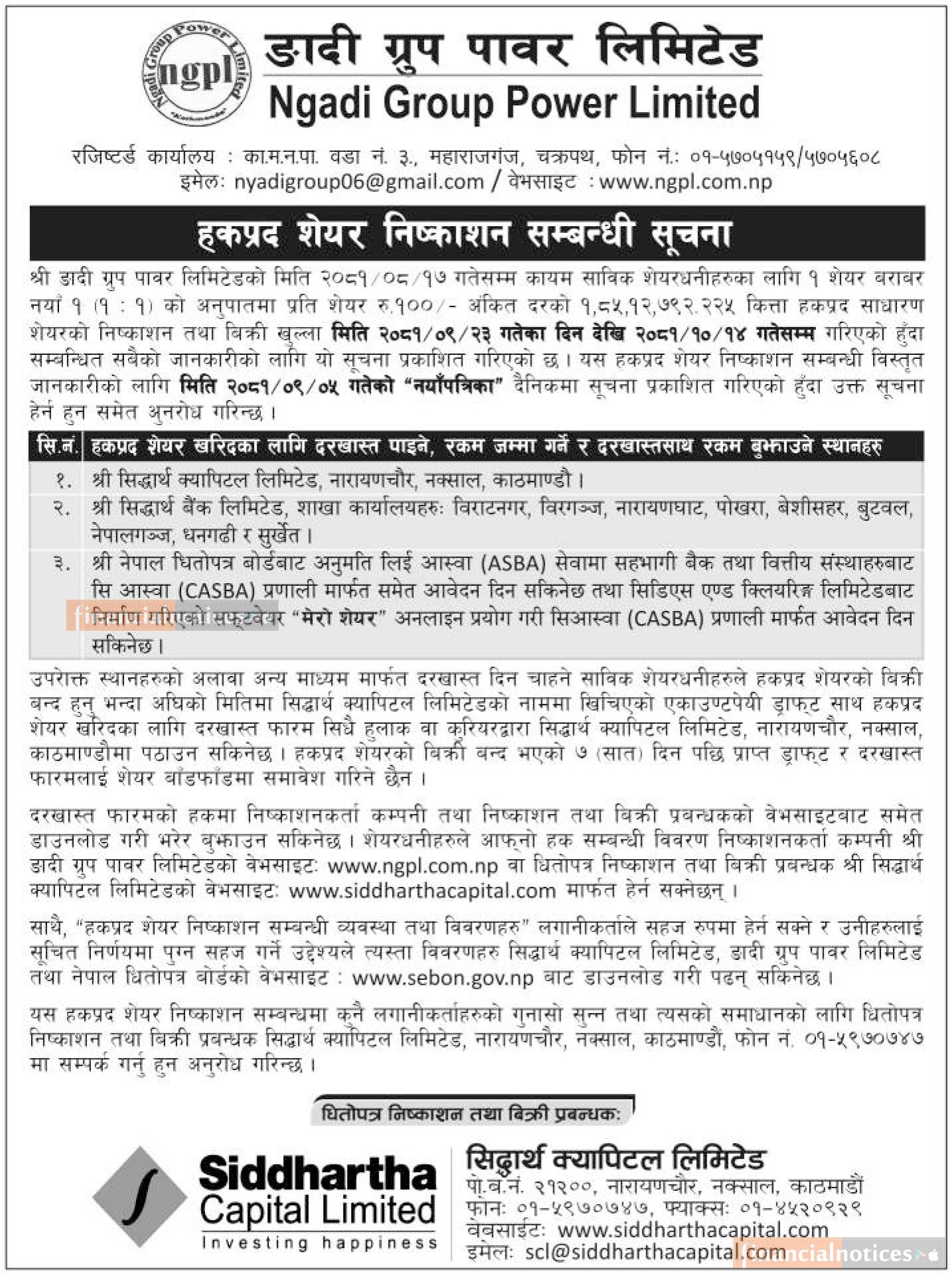 ङादी ग्रुप पावरको हकप्रद शेयर निष्काशन सम्बन्धी सूचना