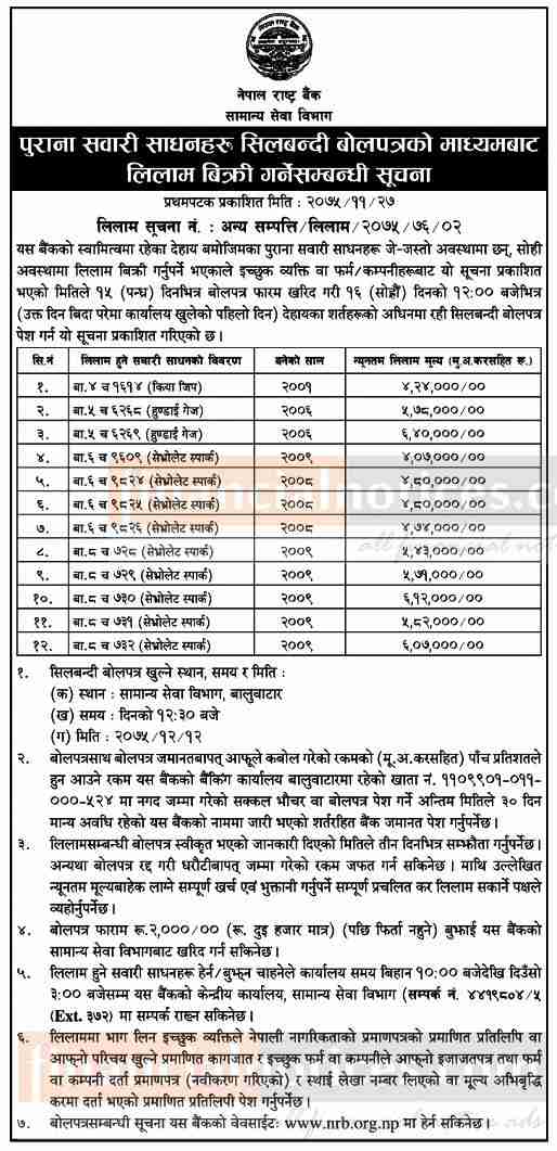 पुराना सवारी साधन लिलाम विक्रिको सूचना