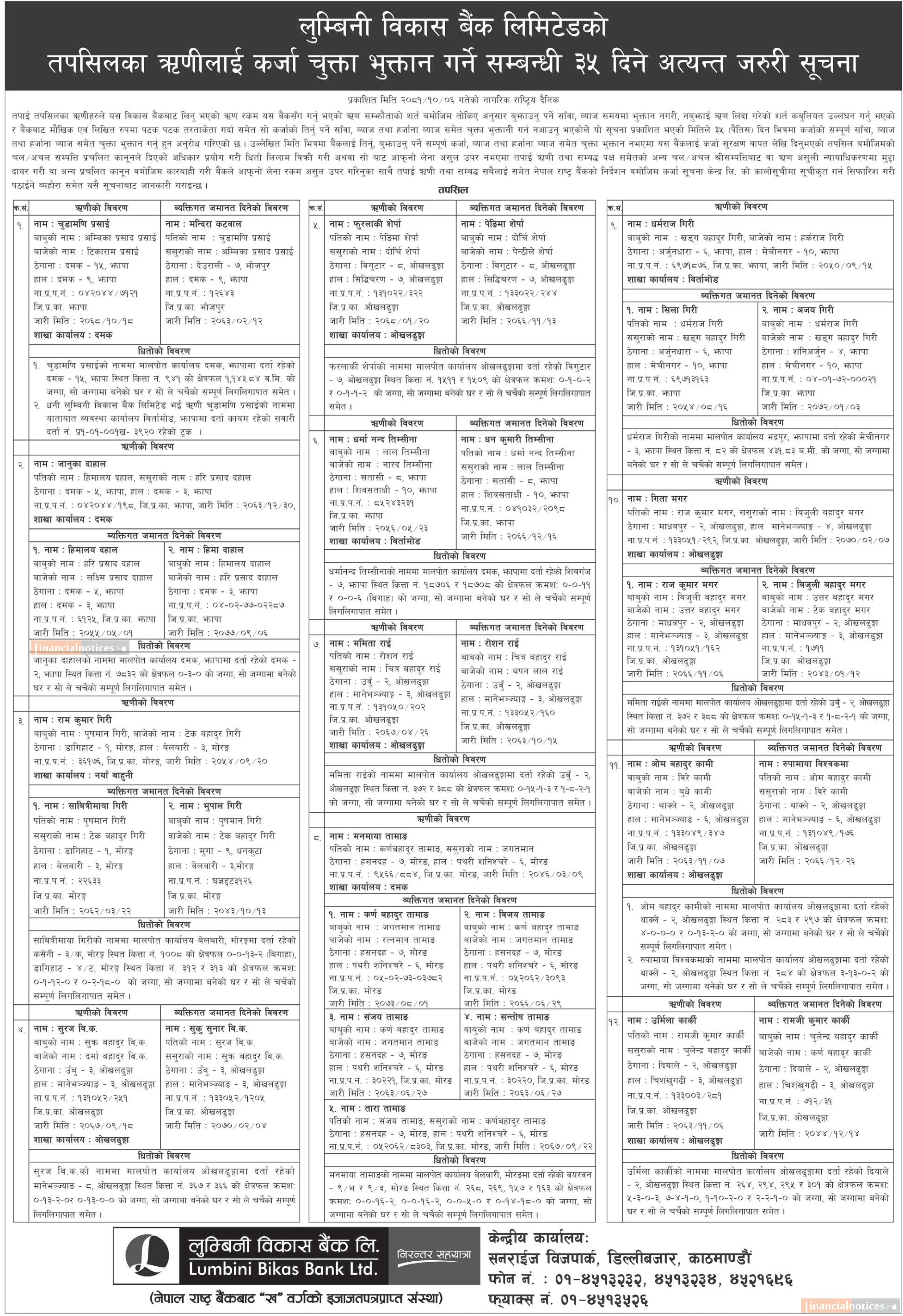 तपसिलका ऋणीहरुलाई कर्जा चुक्ता भुक्तान गर्ने सम्बन्धी ३५ दिने अत्यन्त जरुरी सूचना