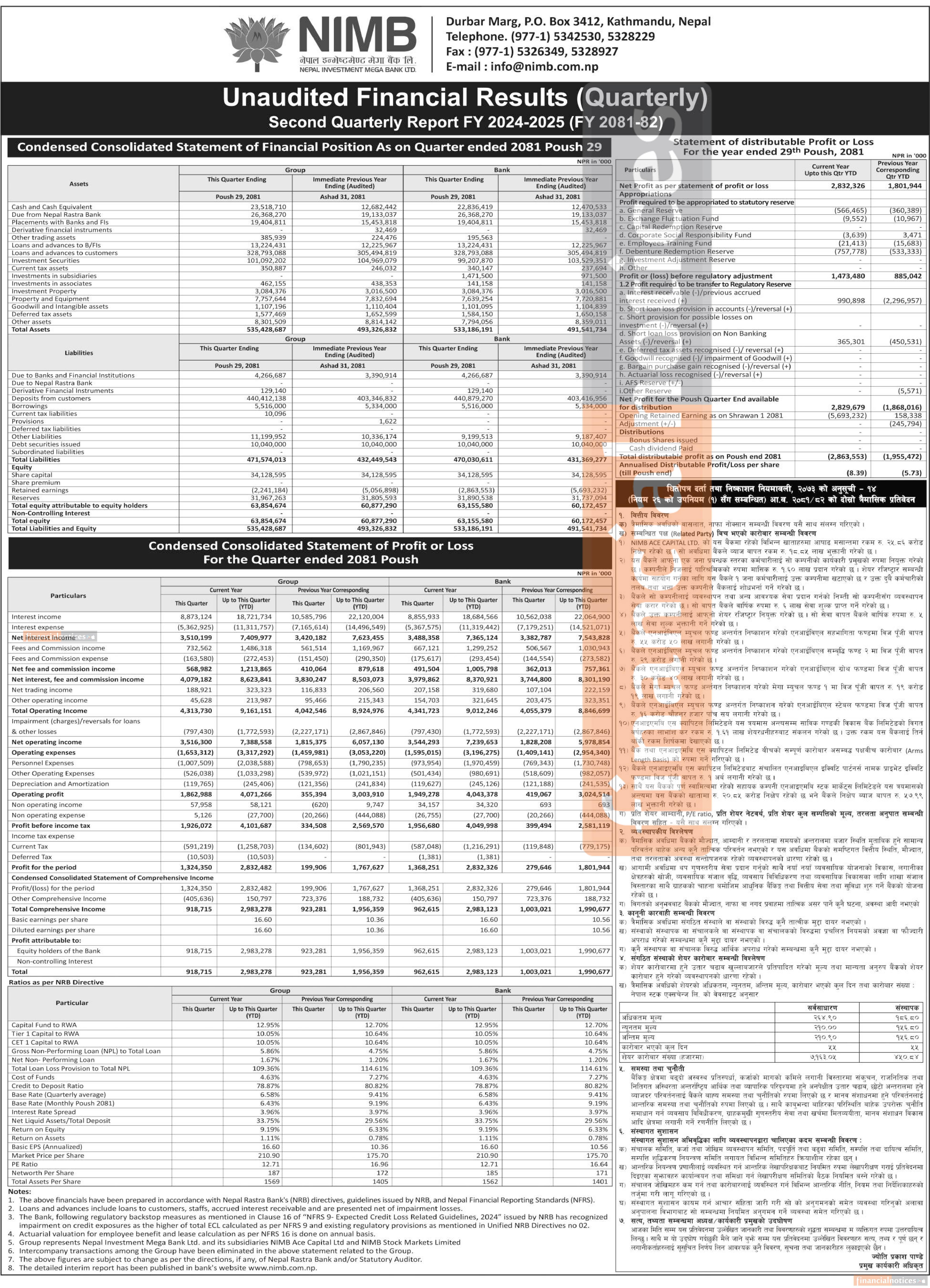 नेपाल इन्भेष्टमेन्ट मेगा बैंकको खुद नाफा २ अर्ब ८३ करोड रुपैयाँ - Q2 Report -