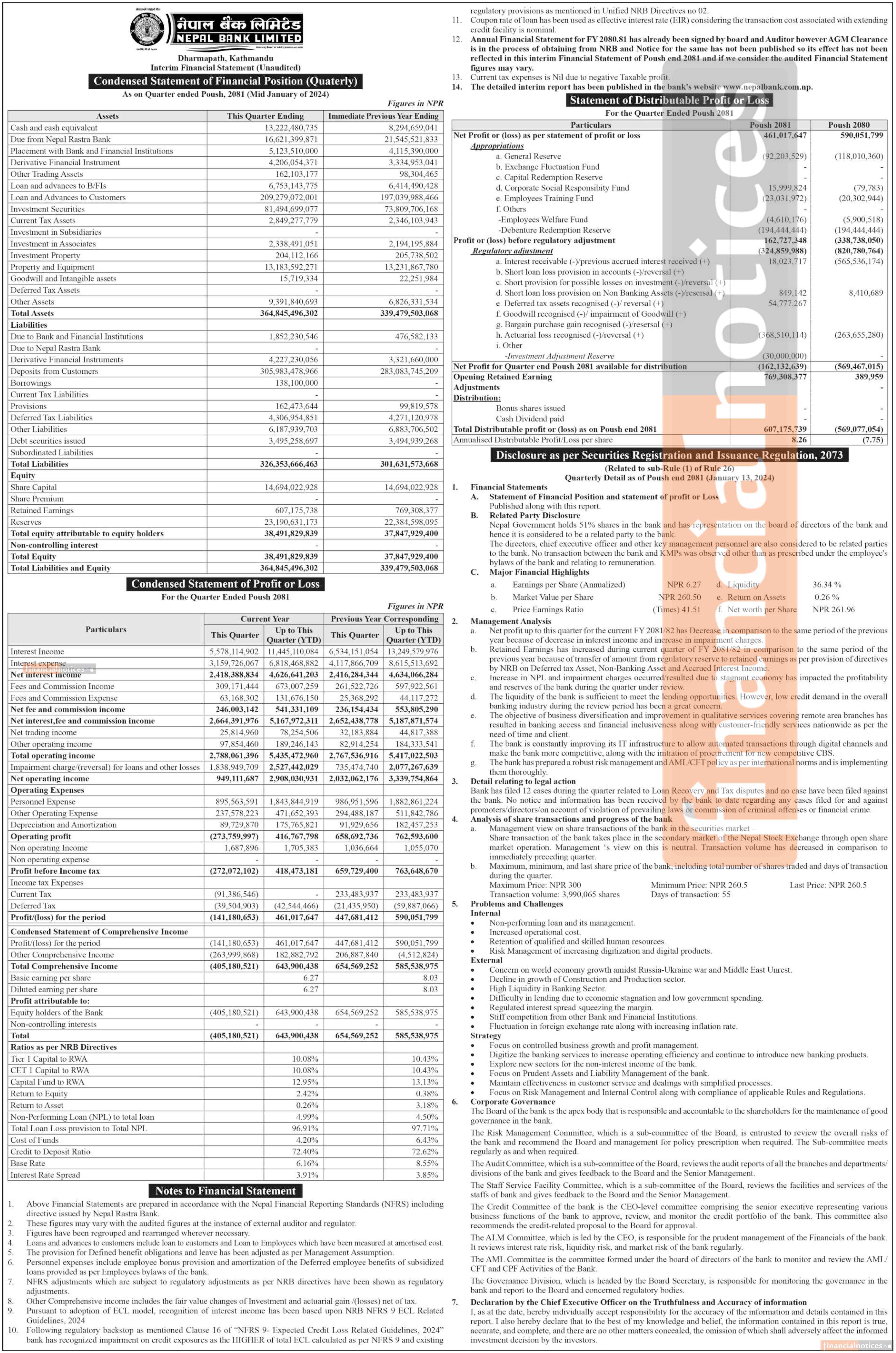 नेपाल बैंकको खुद नाफा २१.८७ प्रतिशतले घटेर ४६ करोड १० लाख १७ हजार रुपैयाँ - Q2 Report -