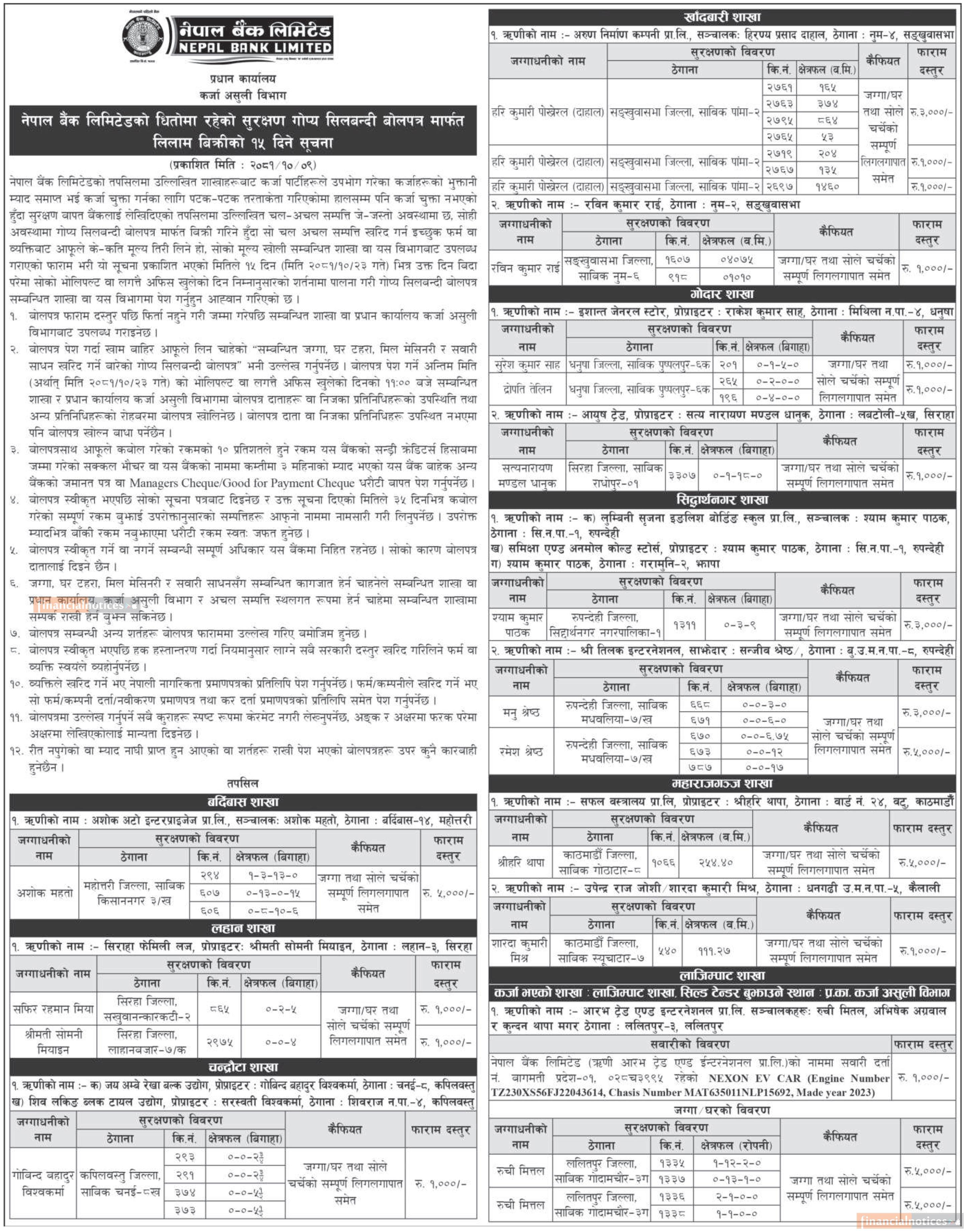 धितोमा रहेको सुरक्षण गोप्य शिलबन्दी बोलपत्र मार्फत् लिलाम बिक्री सम्बन्धी सूचना