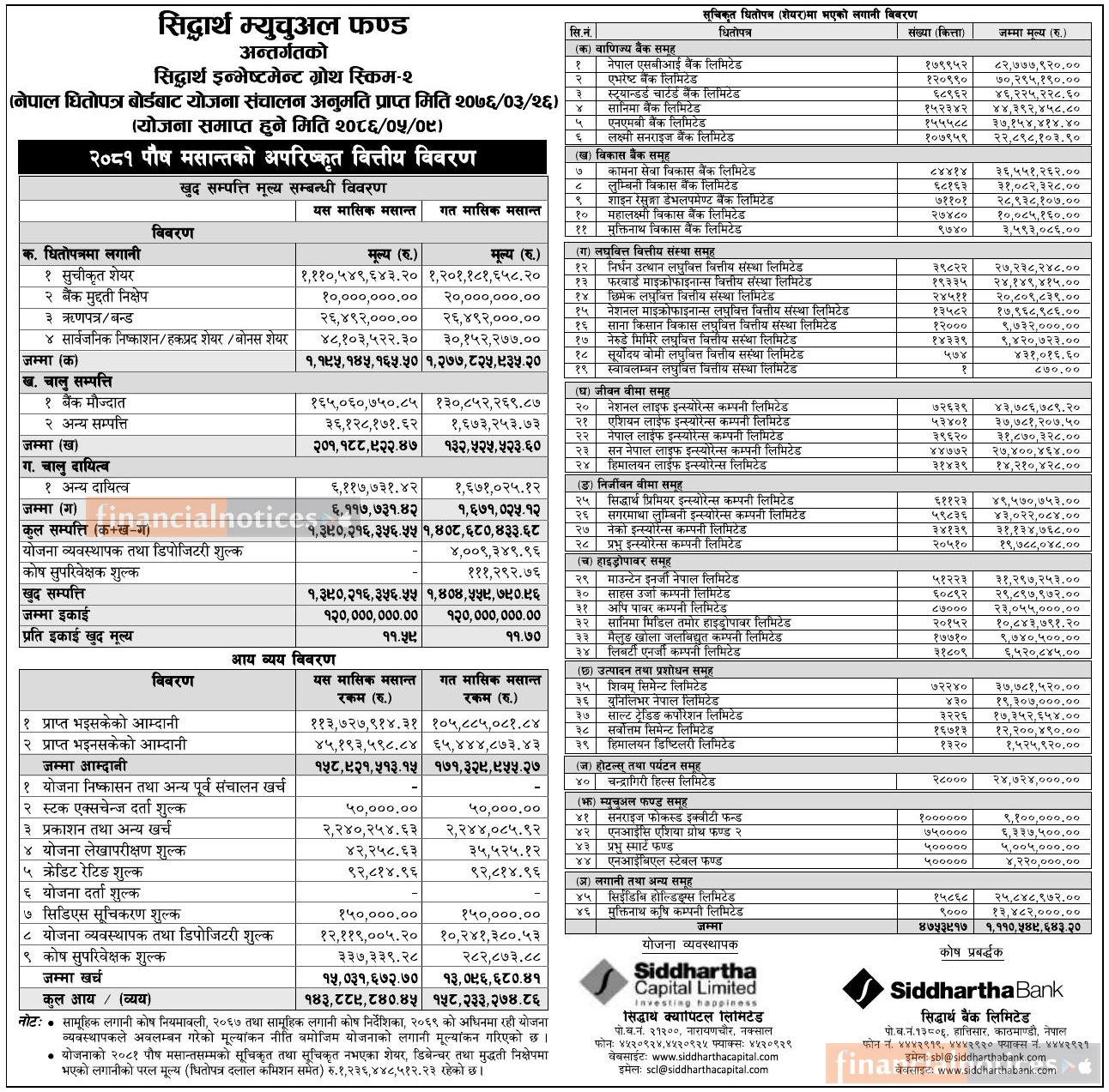 Siddhartha Capital has published “Siddhartha Investment Growth Scheme - 2” NAV till Poush, 2081