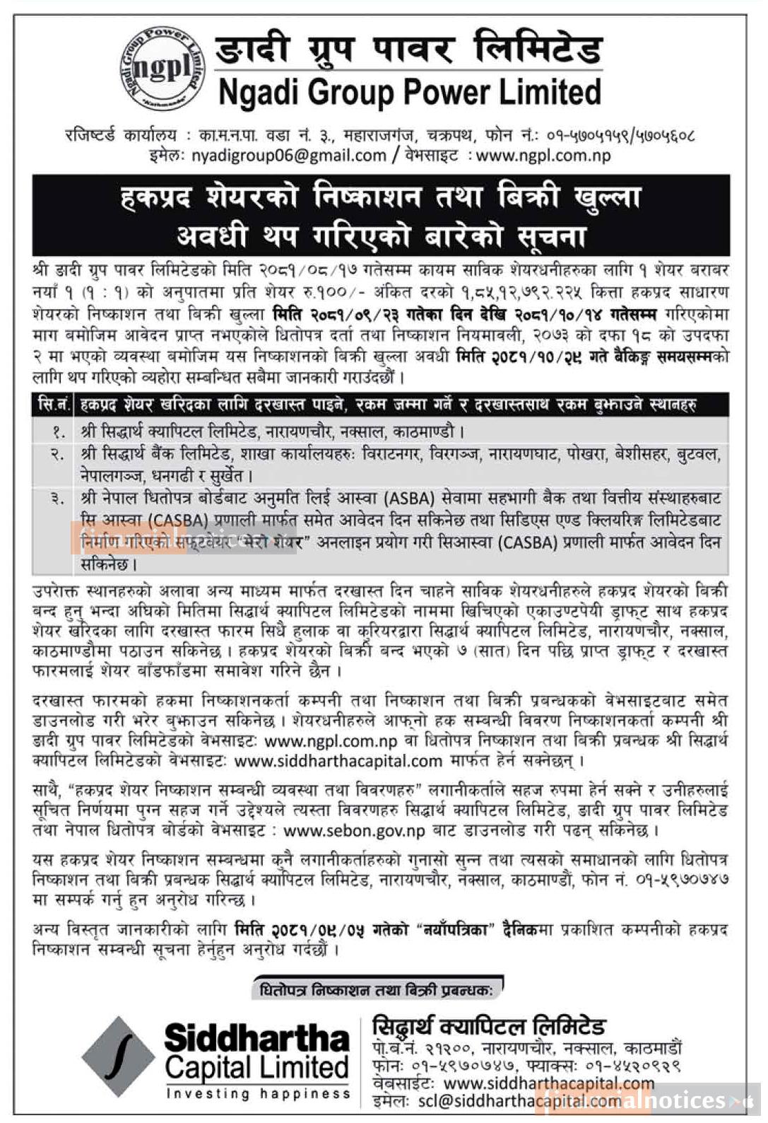 हकप्रद शेयरको निष्काशन तथा बिक्री खुल्ला अवधी थप गरिएकोबारे सूचना -
