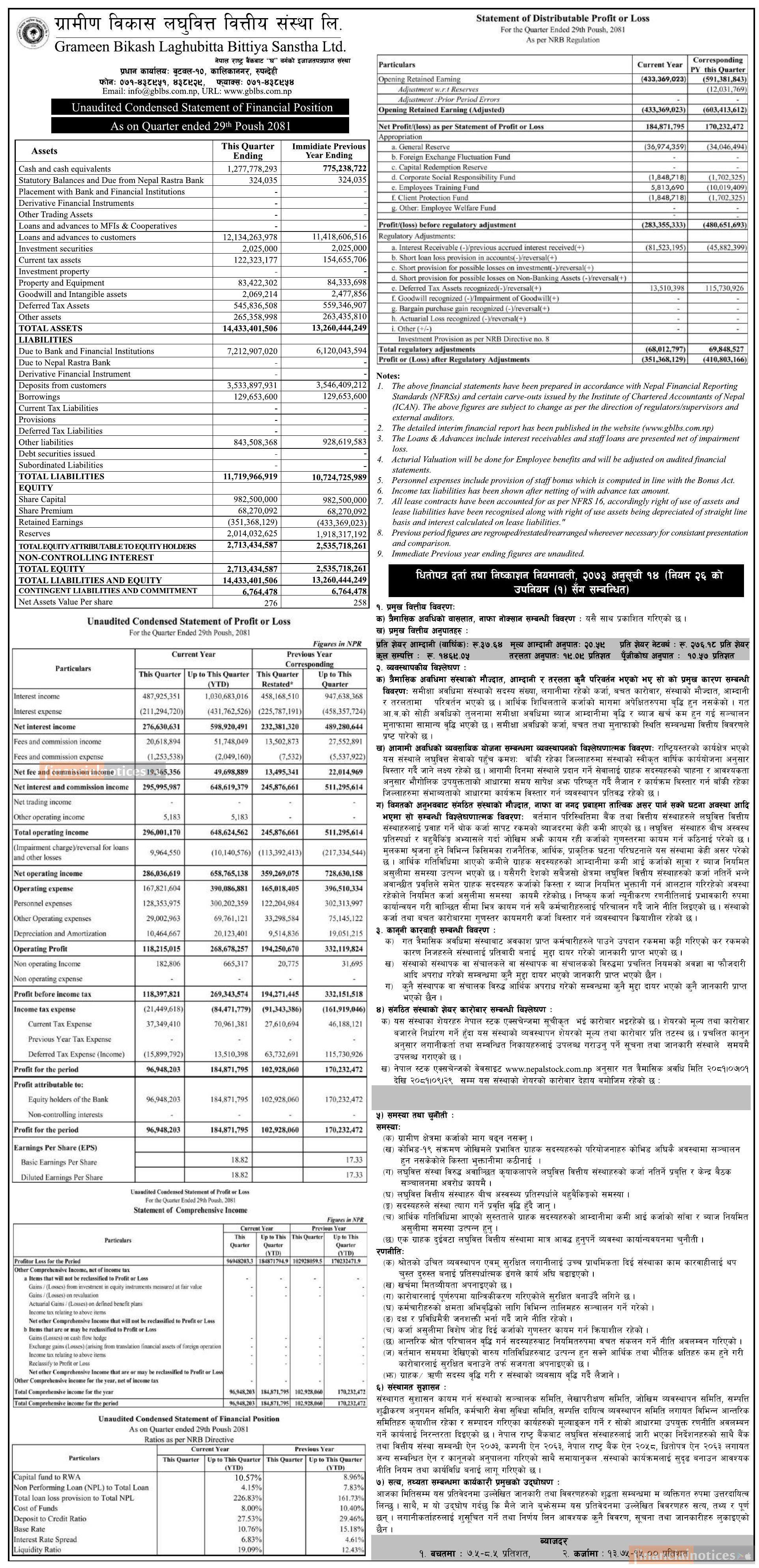 Grameen Bikash Laghubitta Releases Unaudited Financial Report for Q2 FY 2081/82