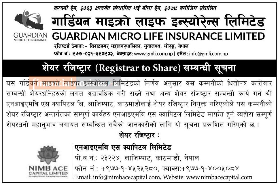 शेयर रजिष्ट्रार सम्बन्धी सूचना