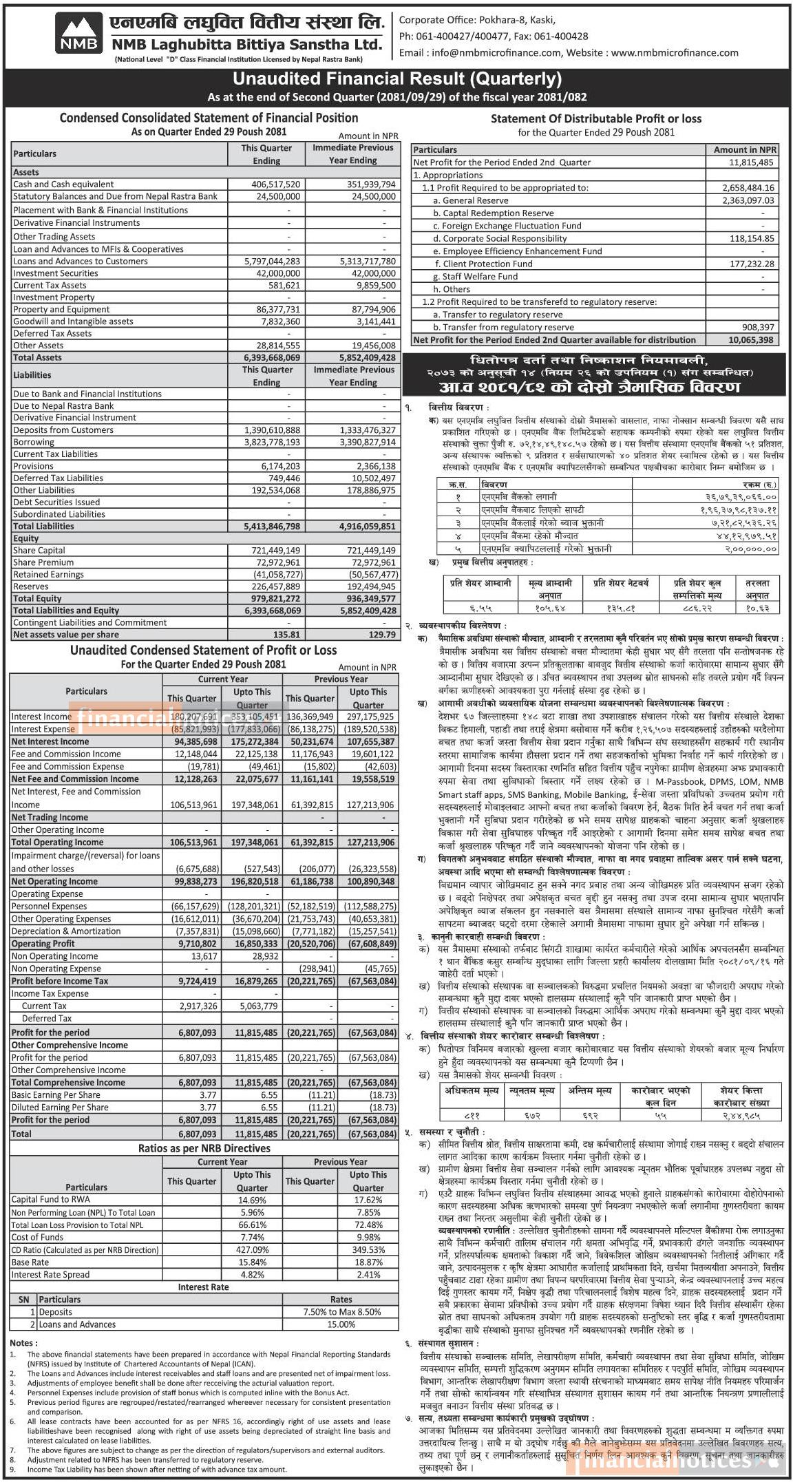 एनएमबि लघुवित्तको खुद नाफा १ करोड १८ लाख रुपैयाँ - Q2 Report -
