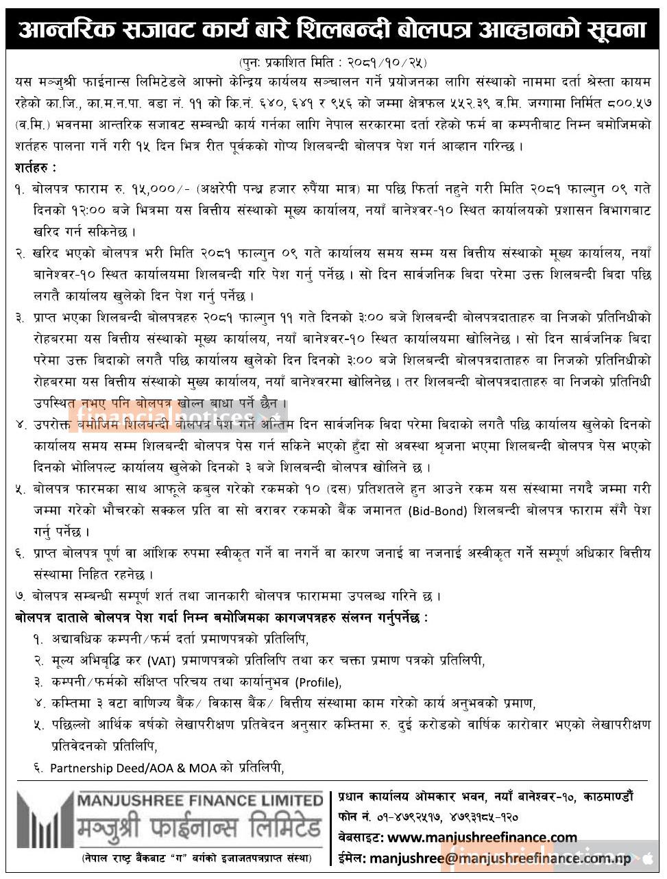 आन्तरिक सजावट कार्य बारे शिलबन्दी बोलपत्र आव्हानको सूचना
