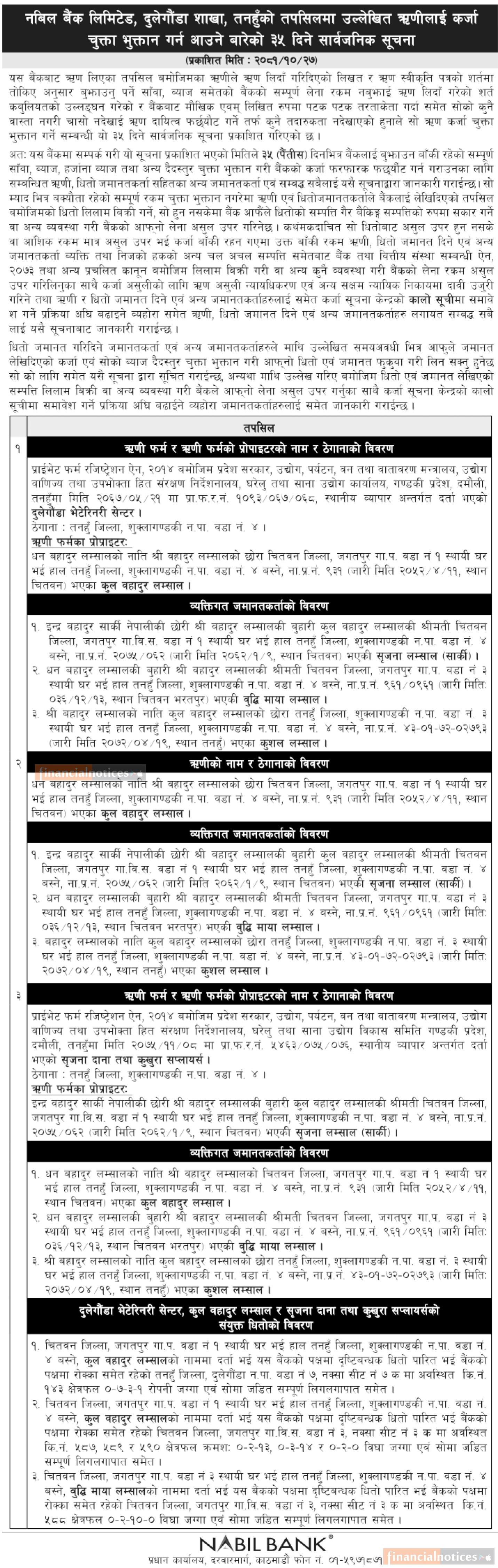 कर्जा चुक्ता भुक्तानी गर्न आउने बारेको ३५ दिने सार्वजनिक सूचना