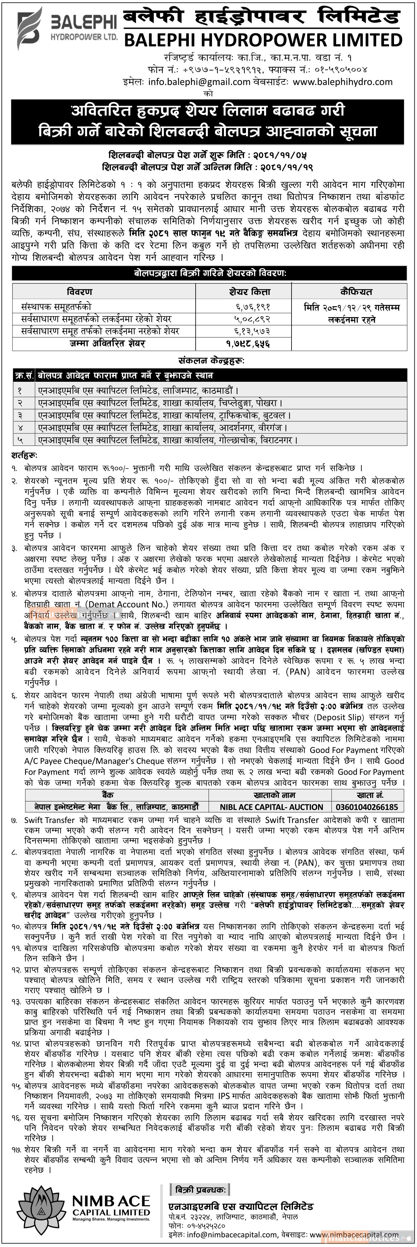 अवितरित हकप्रद शेयर लिलाम बढाबढ गरि बिक्री गर्ने बारेको सूचना