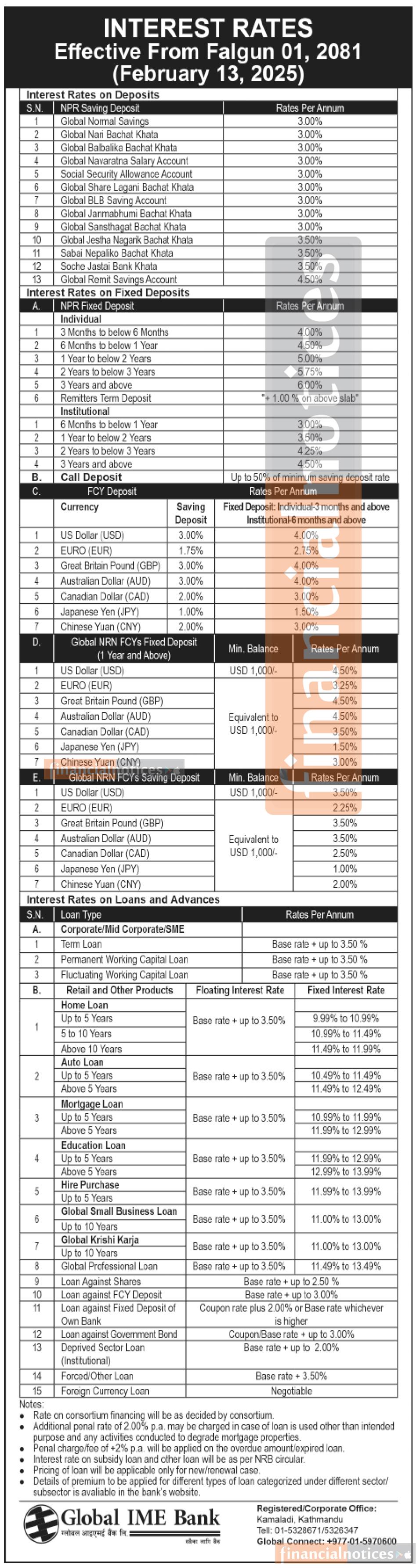 फागुन महिनाका लागि ग्लोबल आईएमई बैंकको नयाँ ब्याजदर सार्वजनिक, जानौ कुन खातामा कति ?