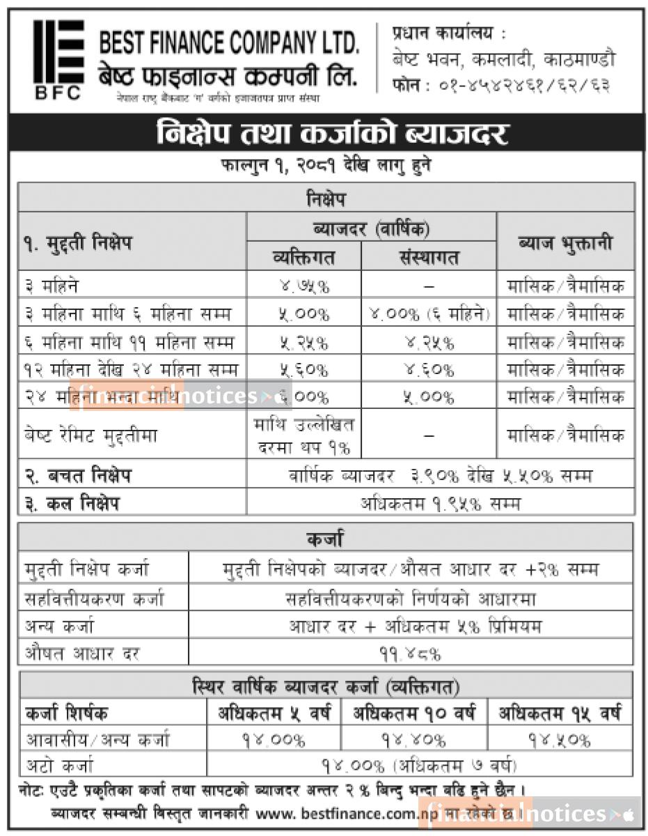निक्षेप तथा कर्जाको ब्यादजर परिवर्तन सम्बन्धी सूचना