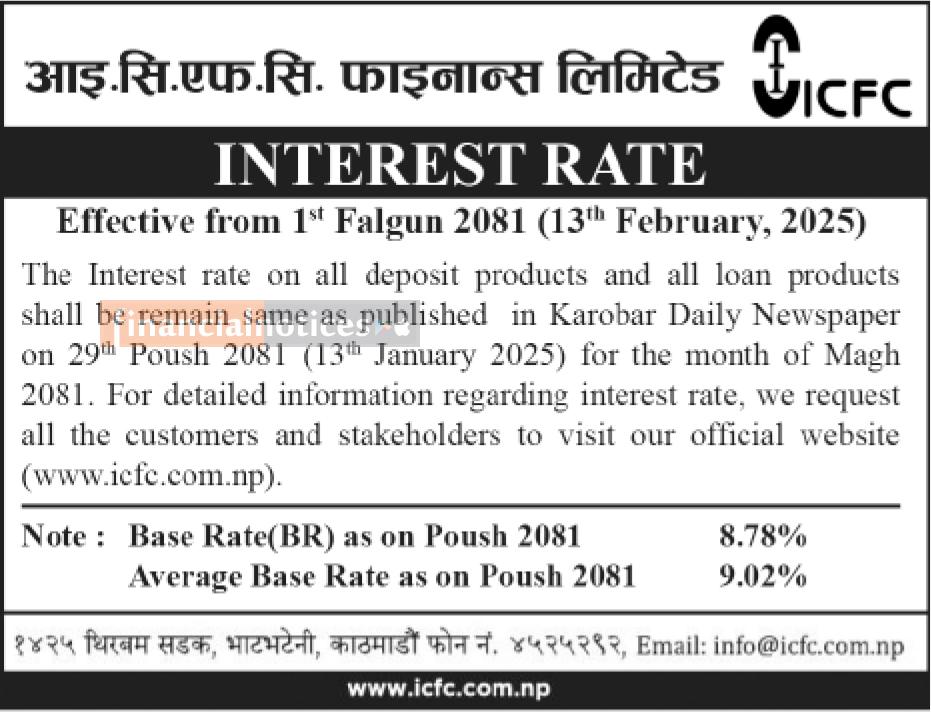 नयाँ ब्याजदर परिवर्तन सम्बन्धी सूचना