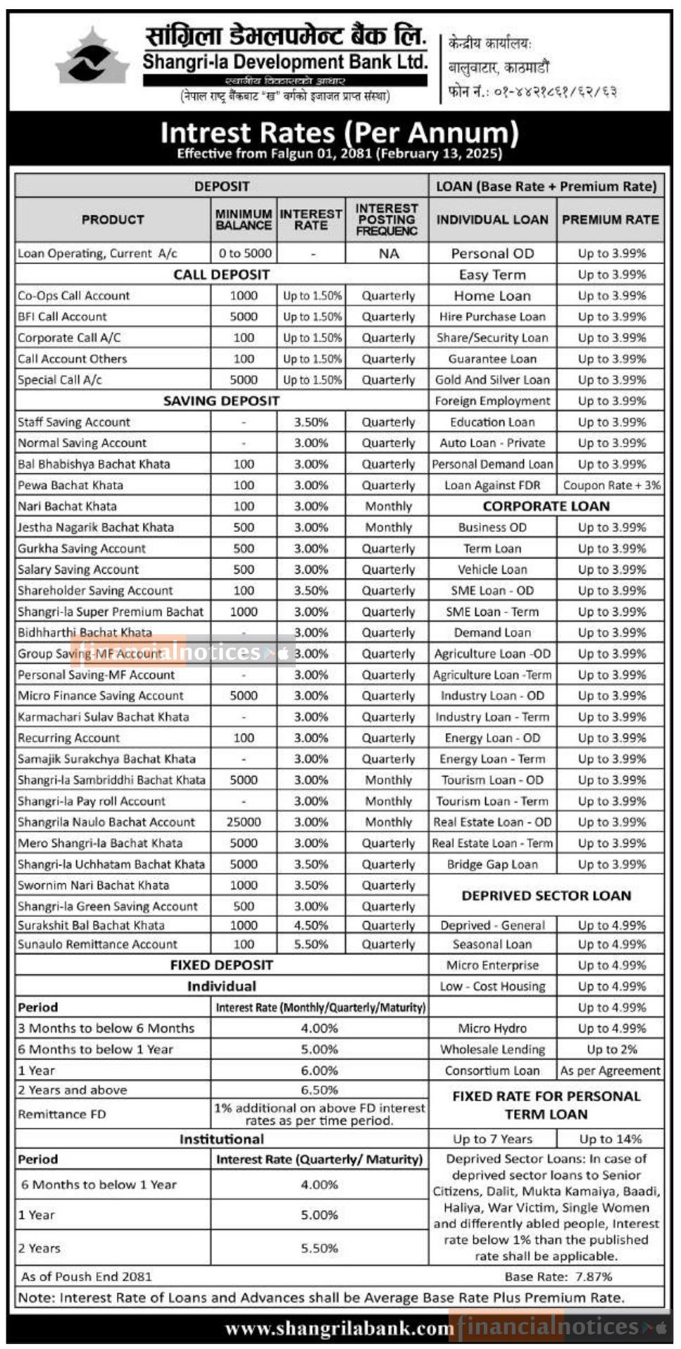 सांग्रिला डेभलपमेन्ट बैंकको नयाँ ब्याजदर सार्वजानिक सम्बन्धी सूचना -