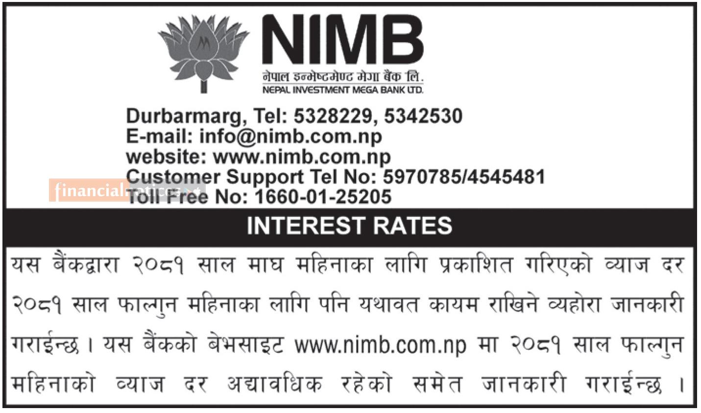 नेपाल इन्भेष्टमेण्ट मेगा बैंकको ब्याजदर यथावत रहने सम्बन्धी जरुरी सूचना - Interest Rates-