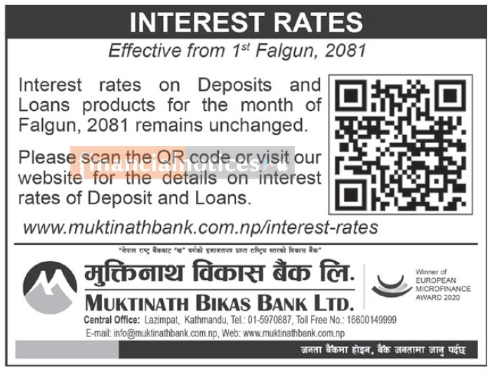 बैंकको ब्याजदर यथावत रहने सम्बन्धी जरुरी सूचना