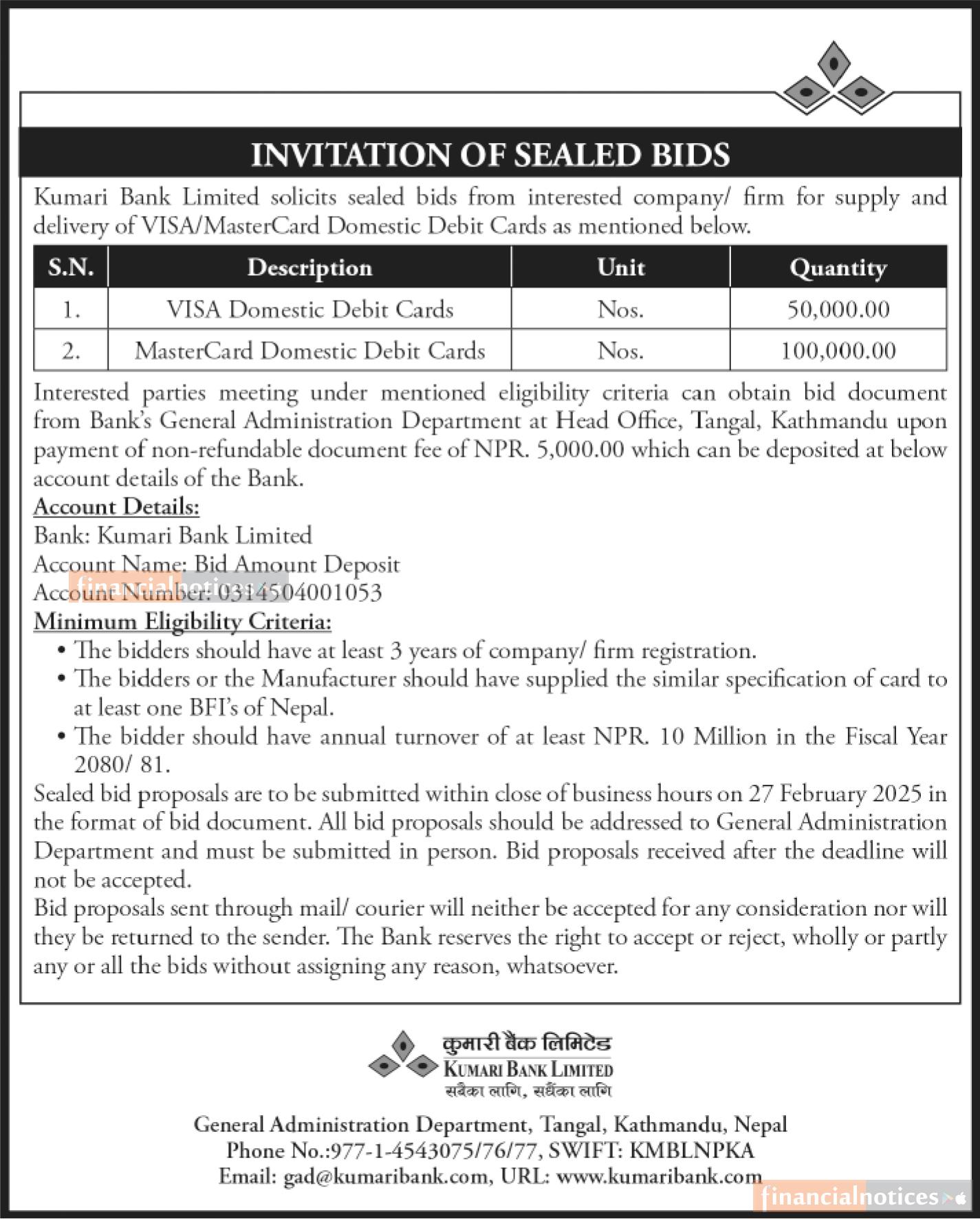 Published by Kumari Bank Ltd (KBL) on 2081-11-1