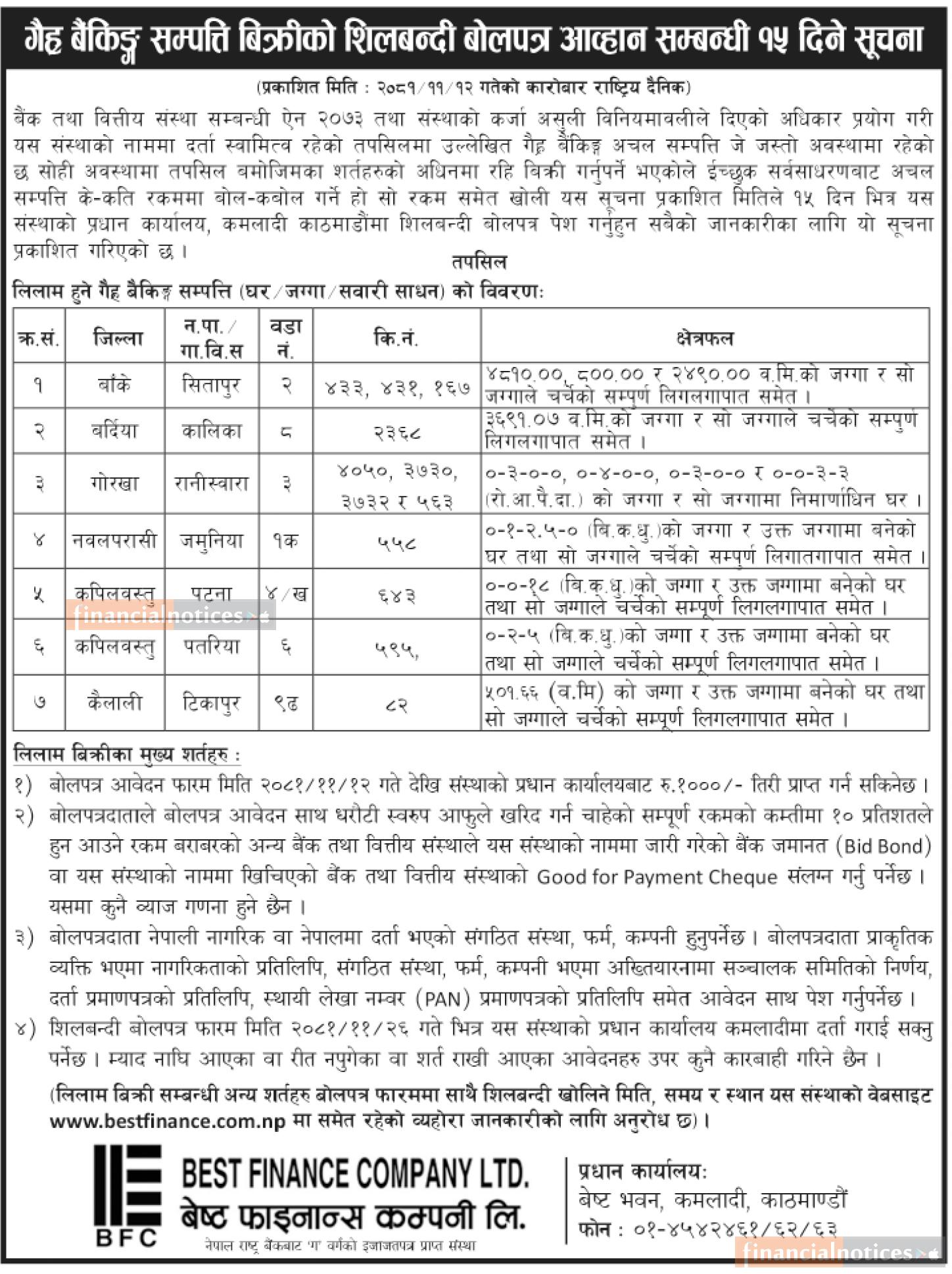 ग्रह्र बैंकिङ सम्पक्ति विक्रीको शिलबन्दी बोलपत्र आह्वान सम्बन्धी सूचना