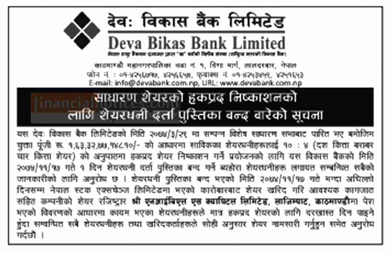 Published by Deva Bikas Bank http://www.devabank.com.np on 2074-11-05