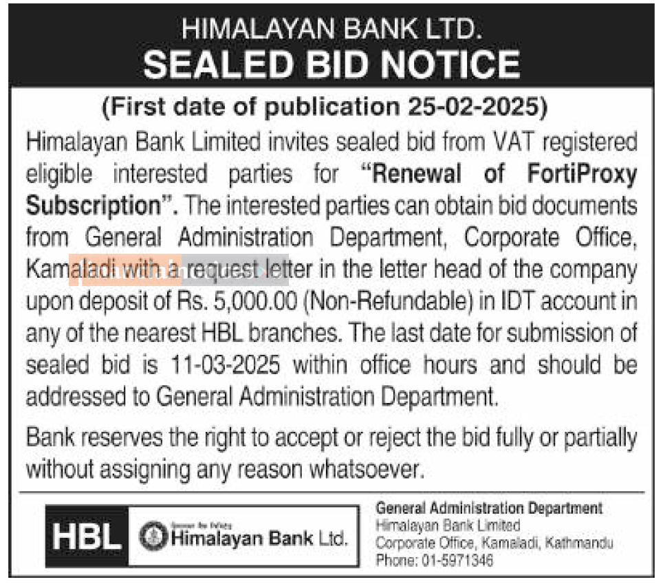 Published by Himalayan Bank Ltd on 2081-11-13