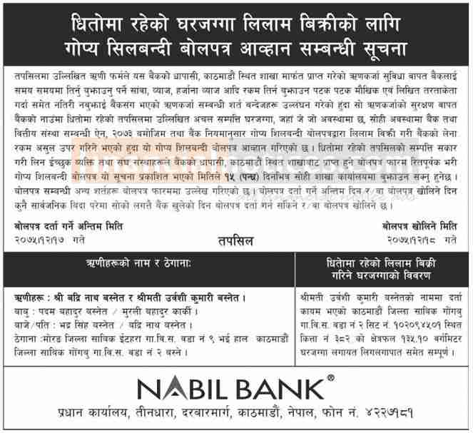 Nepal SBI Bank: Auction Notice for Non-Banking Assets at Geta-2, Kailali