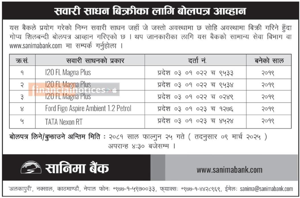 सवारी साधन विक्रीका लागि बोलपत्र आव्हानको सूचना