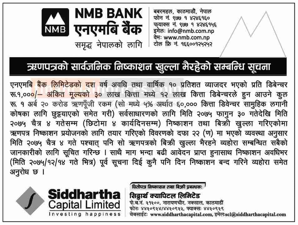 Published by Siddhartha Capital Ltd Kantipur Newspaper on 2075-12-04