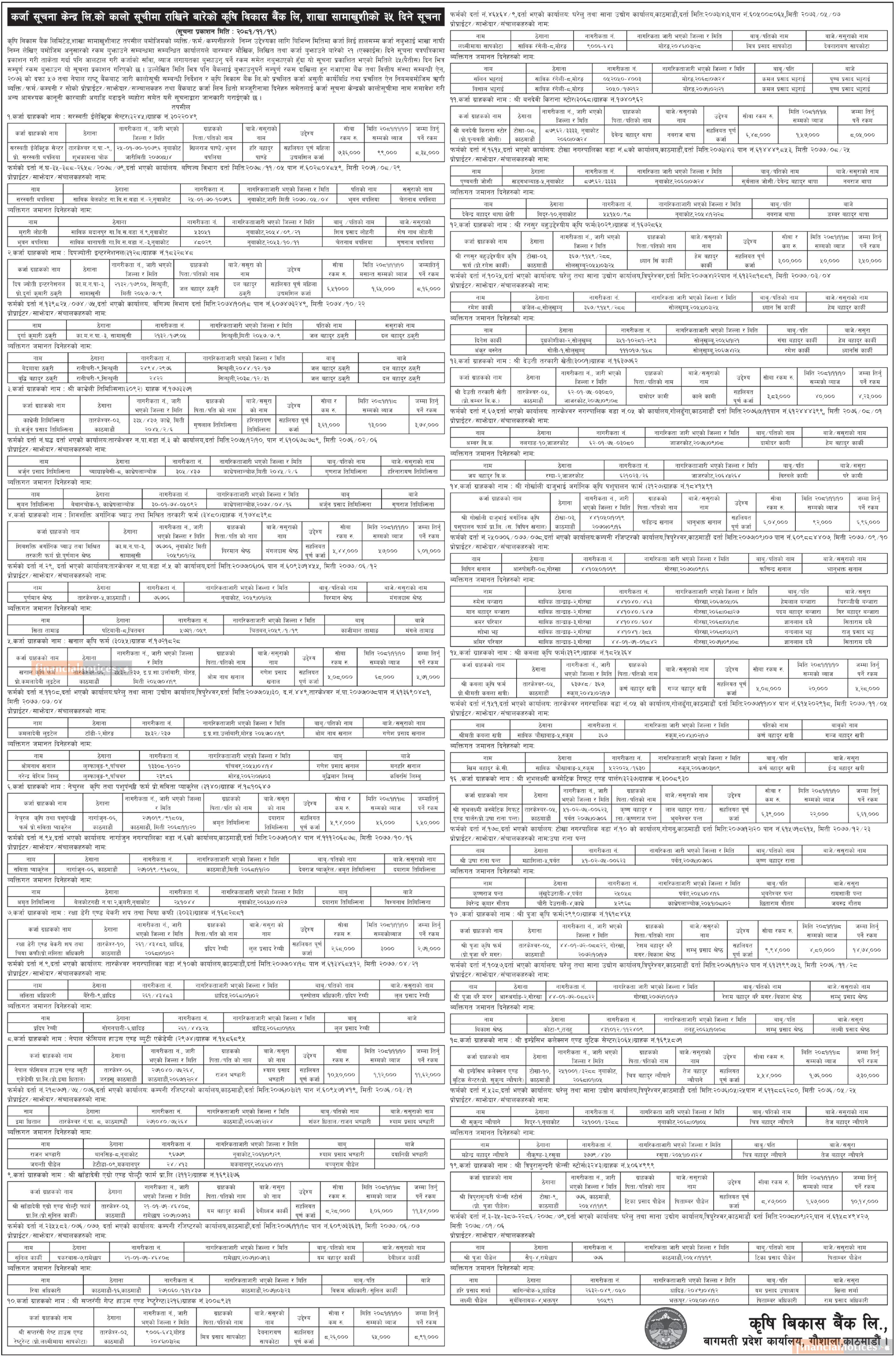 कृषि विकास बैंकको कर्जा सूचना केन्द्रको कालोसूचीमा राखिने बारे सूचना -
