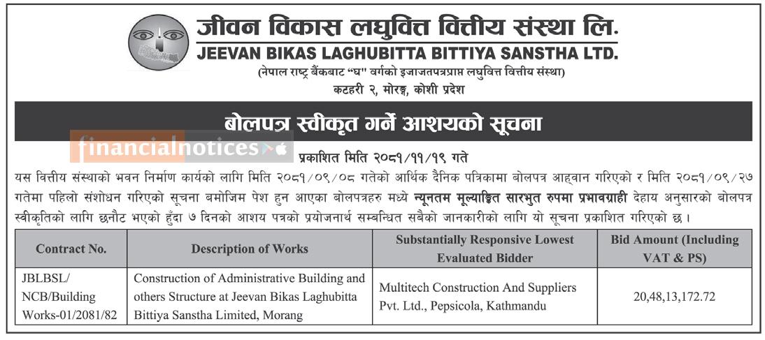 बोलपत्र स्वीकृत गर्ने आशयको सूचना