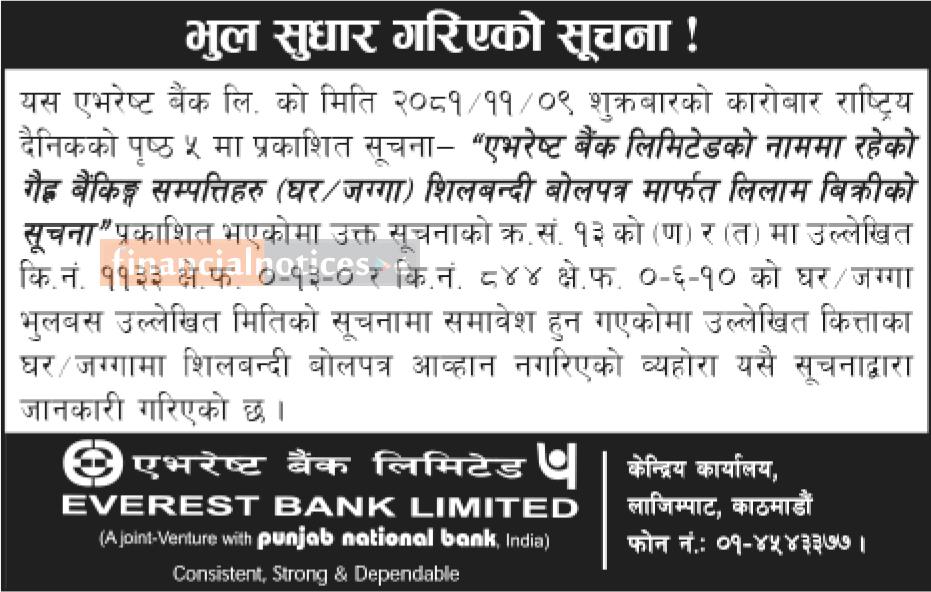 भुल सुधार सम्बन्धी अत्यन्त जरुरी सूचना