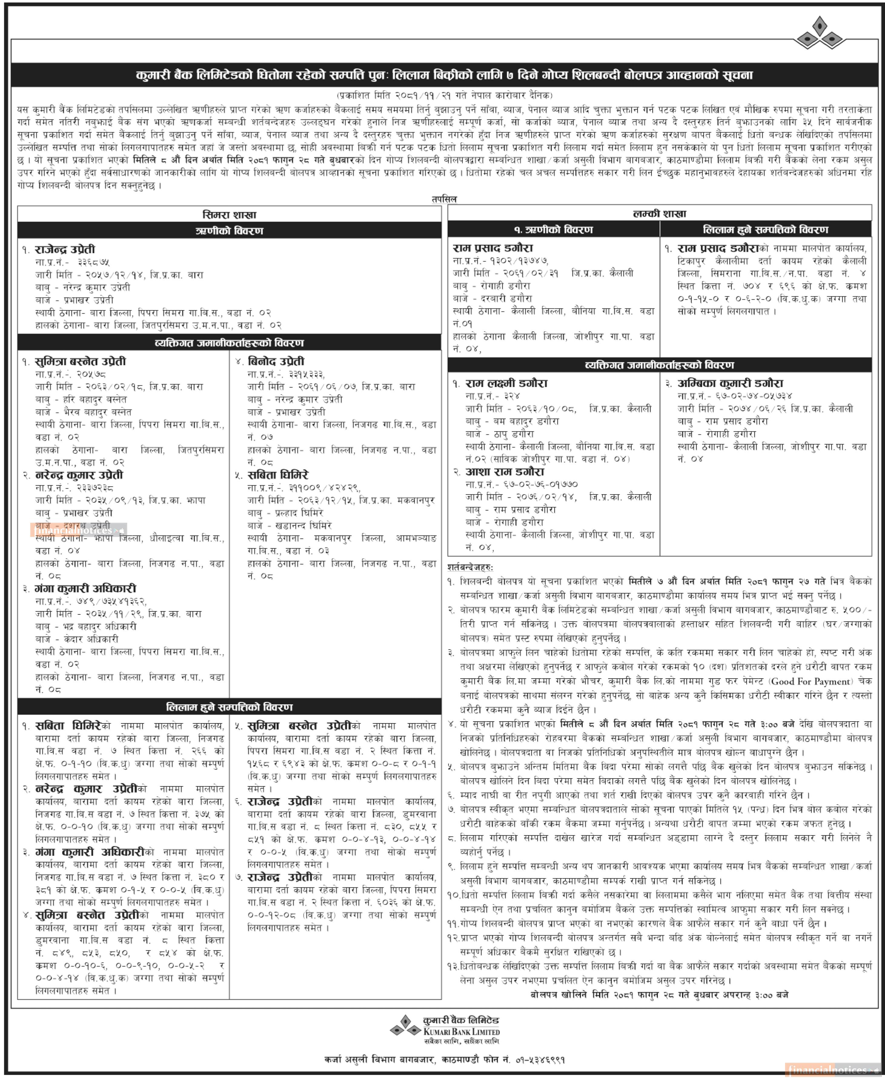Published by Kumari Bank Ltd (KBL) on 2081-11-21