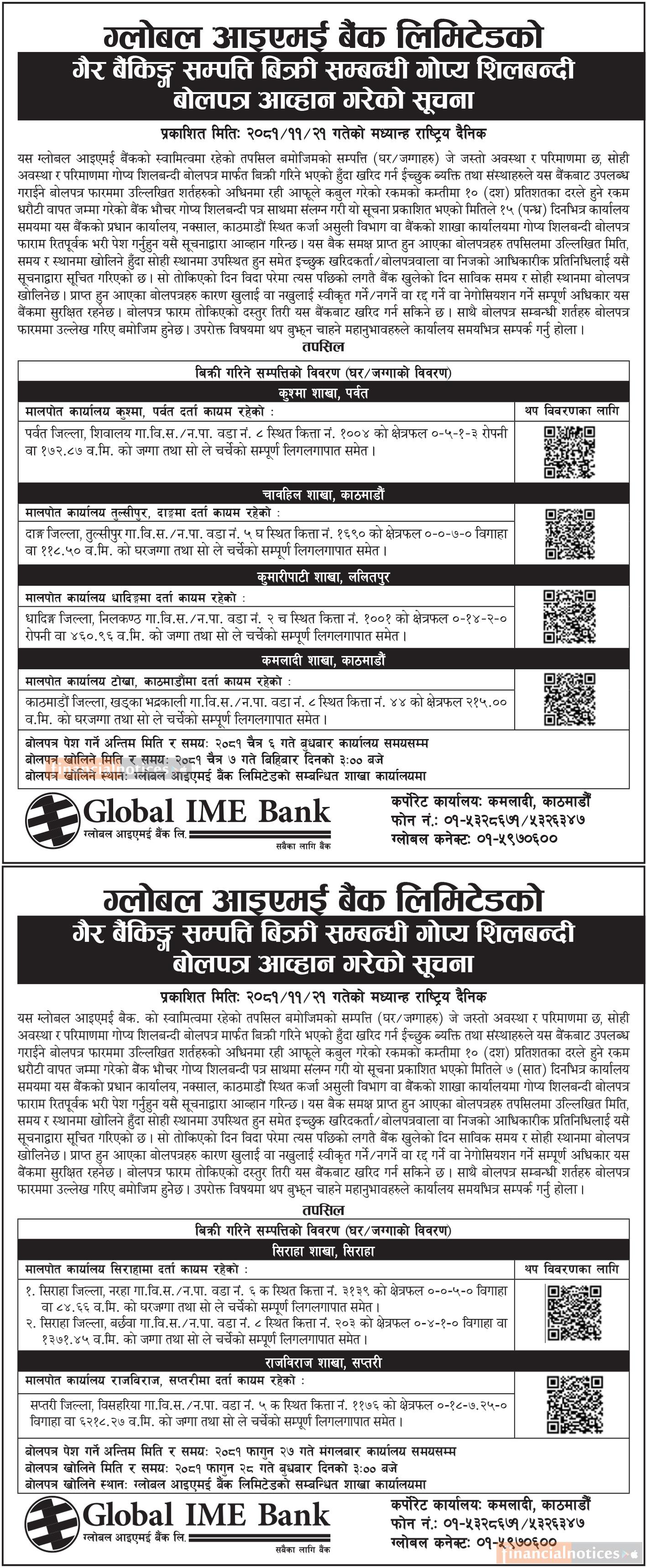 गैह्र बैंकिङ्ग सम्पत्ति बिक्री सम्बन्धी शिलबन्दी बोलपत्र आव्हान गरेको सूचना