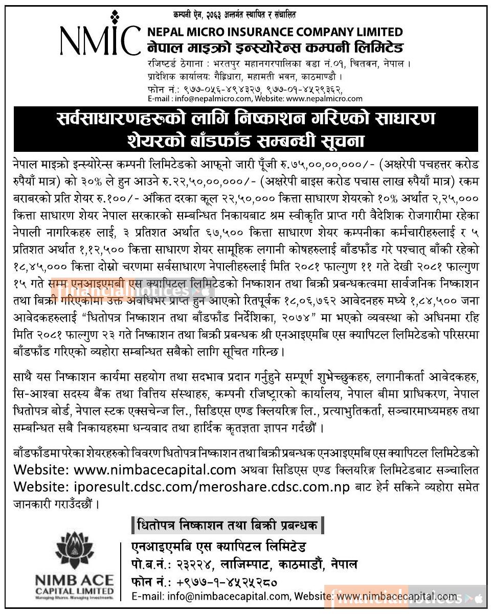 नेपाल माइक्रो इन्स्योरेन्सको आइपीओ बाँडफाँट सम्बन्धी सूचना
