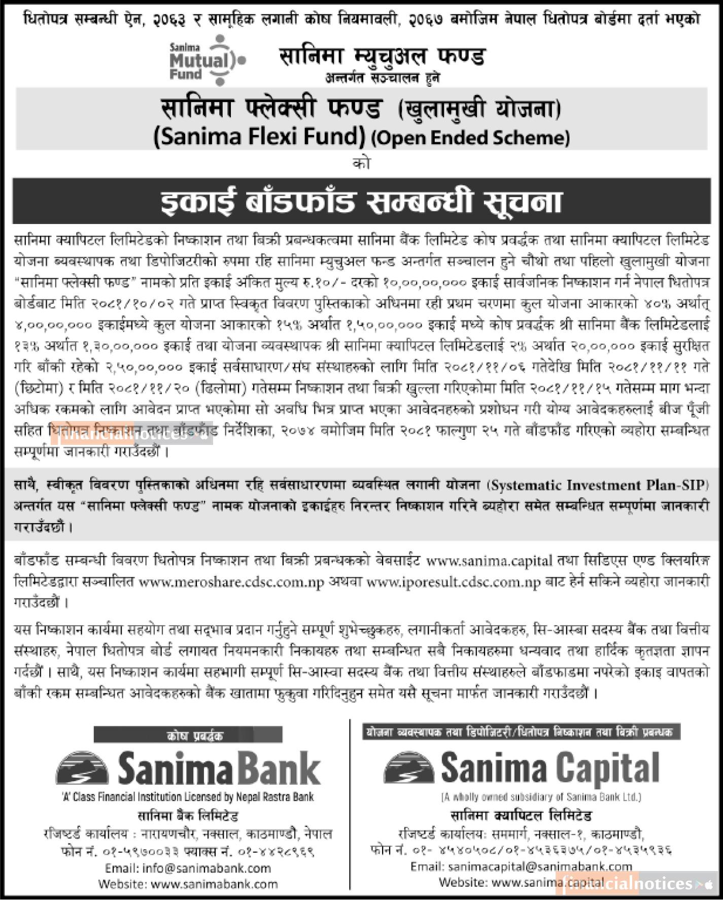 सानिमा फ्लेक्सी क्याप फण्डको इकाई बाँडफाँड सम्बन्धी सूचना