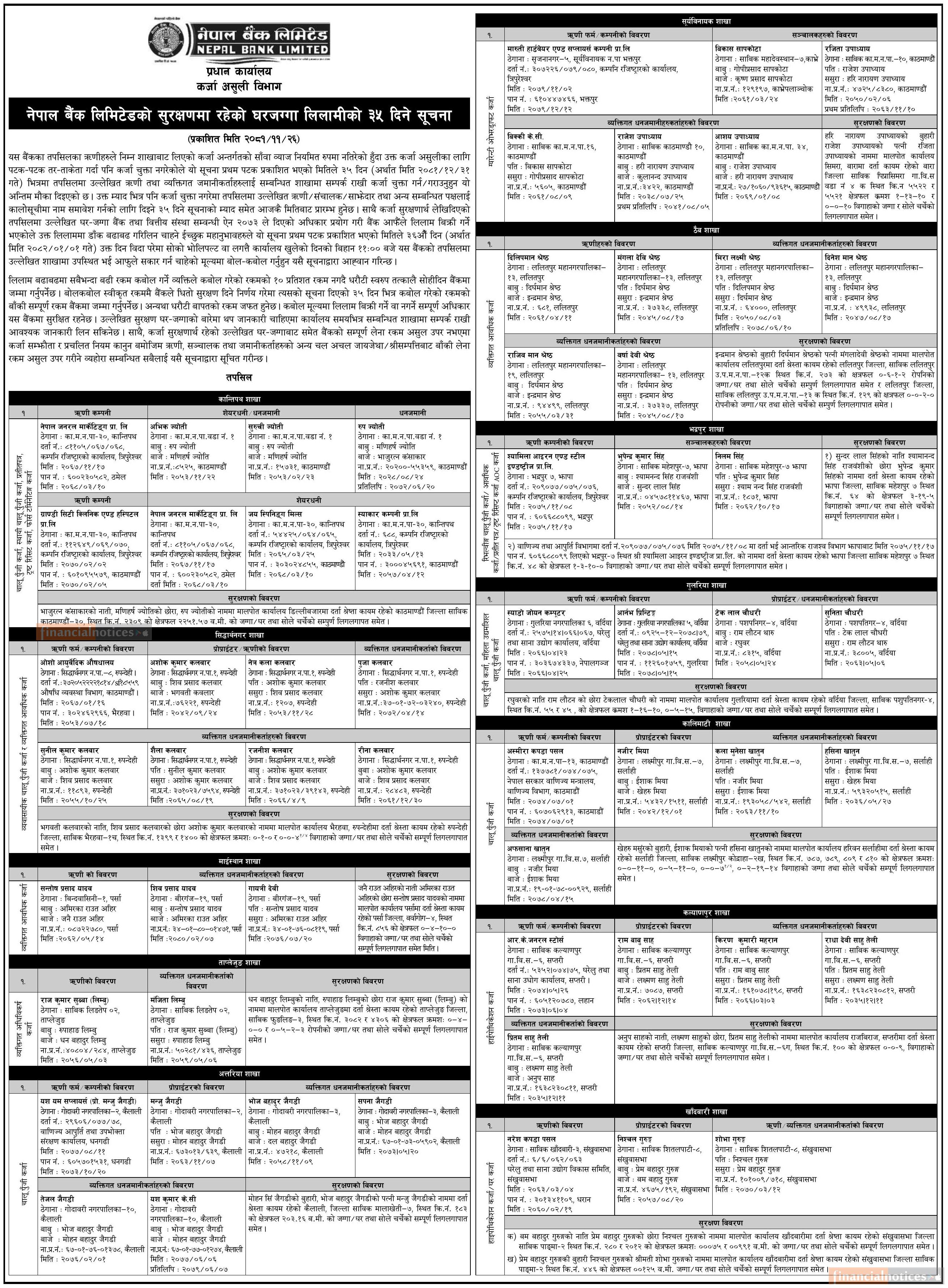 धितो सुरक्षणमा रहेको घरजग्गा लिलामीको ३५ दिने सूचना