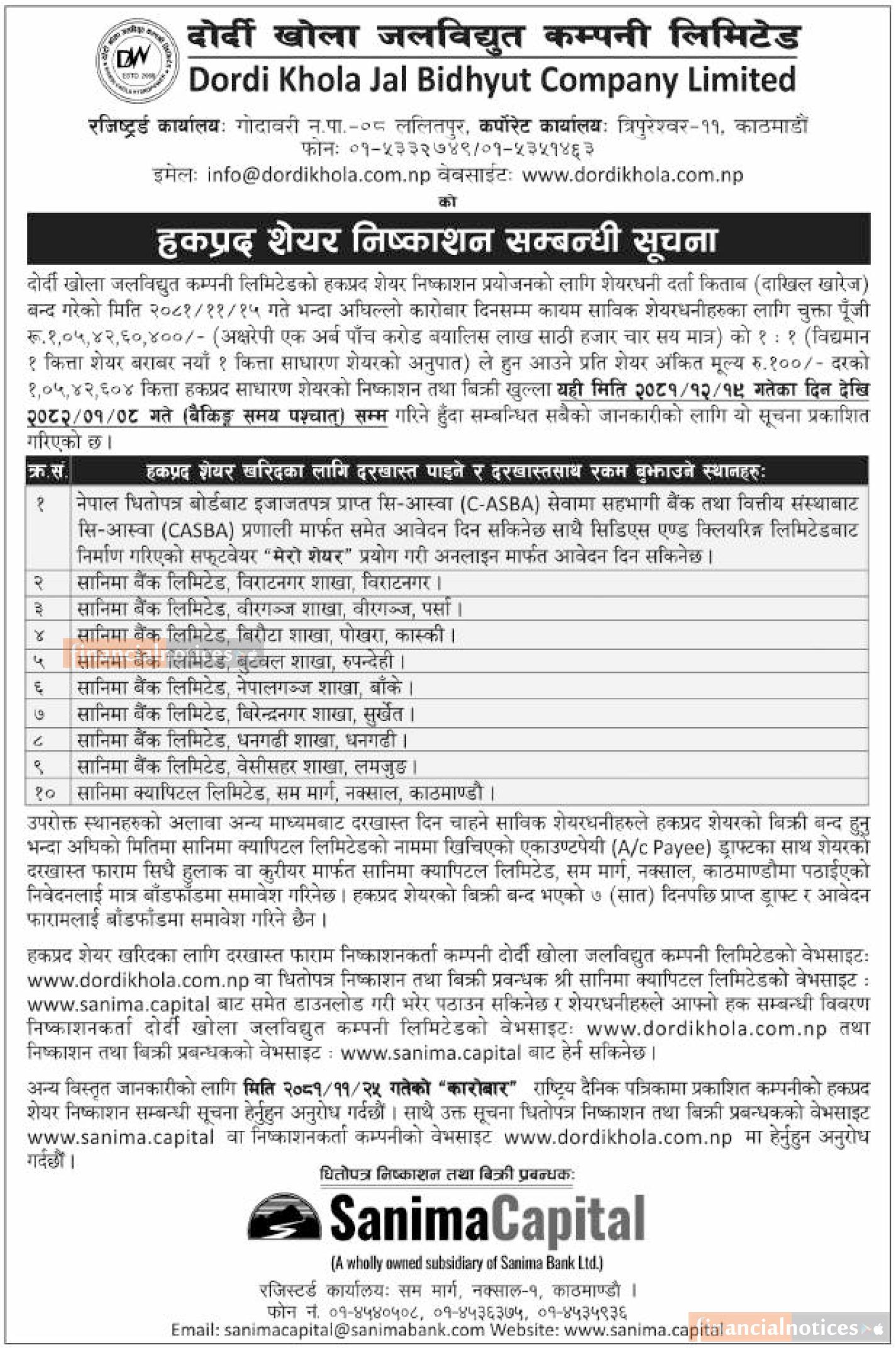 हकप्रद शेयर निष्काशन सम्बन्धी सूचना