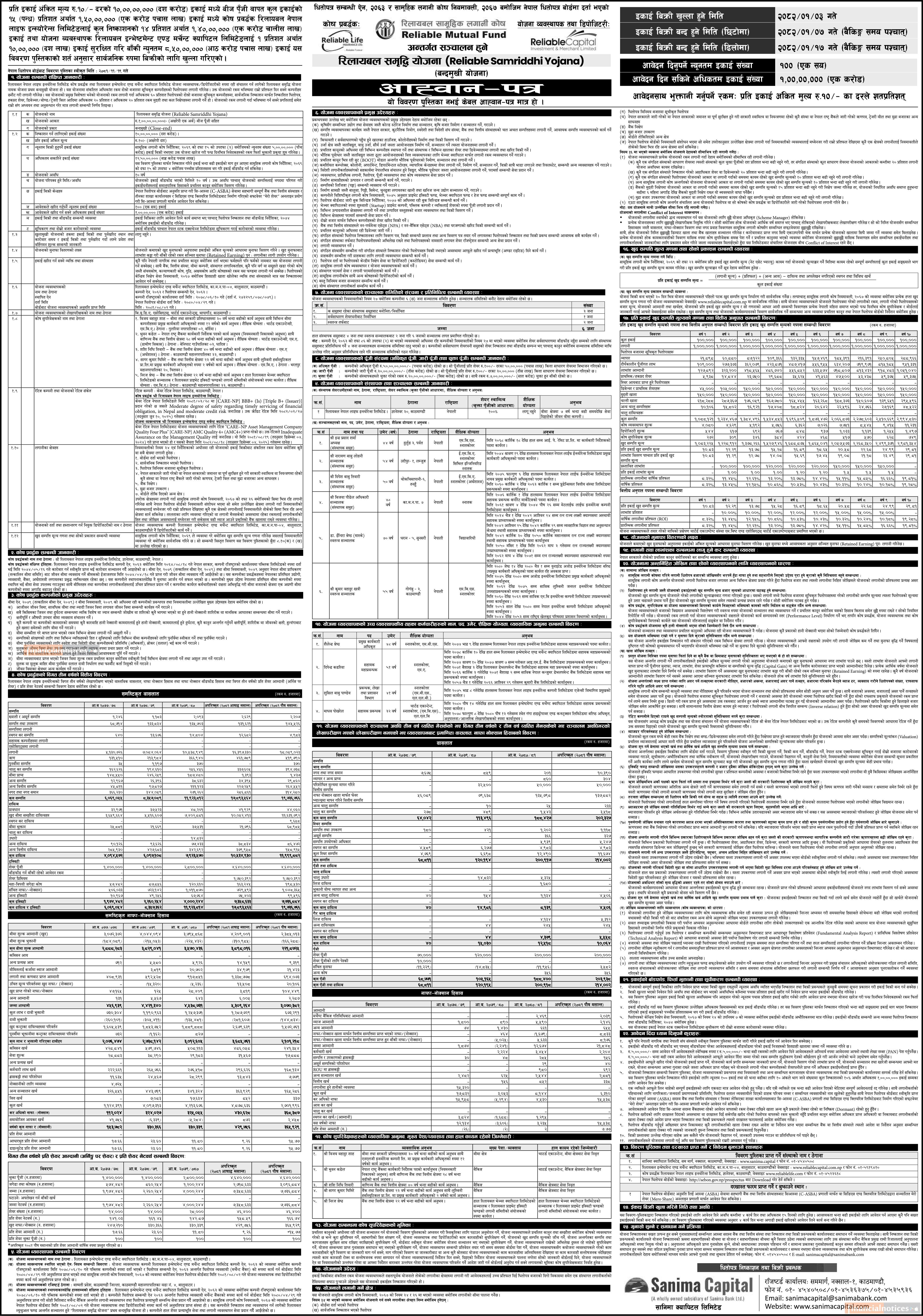 रिलायबल क्यापिटलले बैशाख ३ गतेदेखि रिलायबल समृद्धि योजना निष्काशन गर्ने बारे सूचना