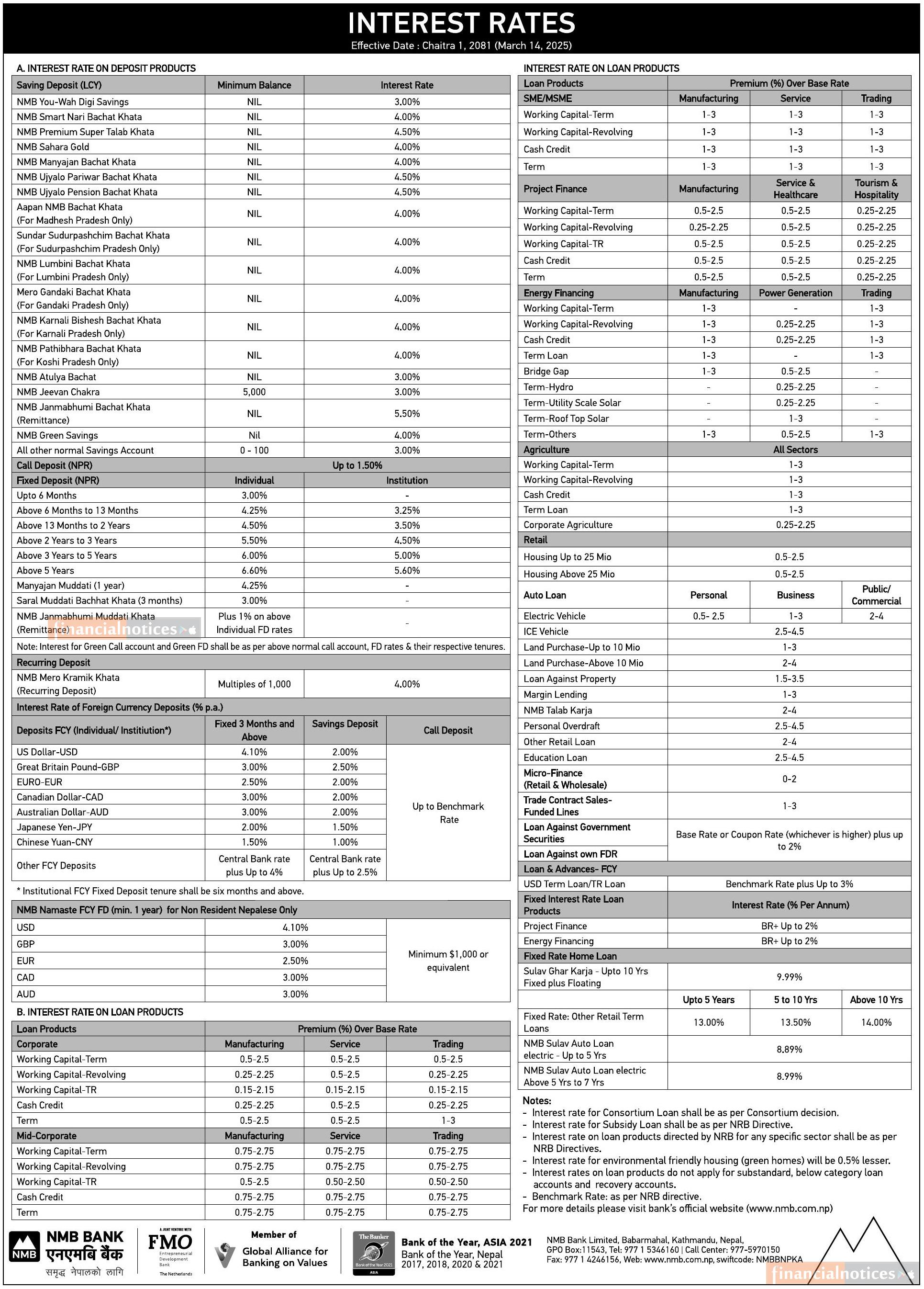 एनएमबि बैंकको ब्याजदर परिवर्तन,चैत १ गतेदेखि कुन खातामा कति पुग्यो ?