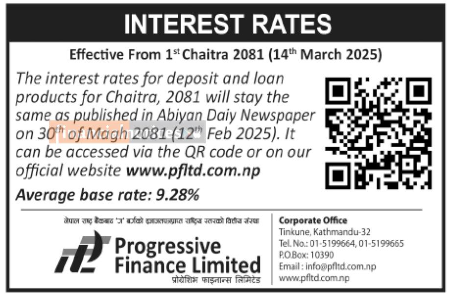प्रोग्रशिभ फाइनान्सको चैत महिनाको लागि ब्याजदर परिवर्तन सम्बन्धी सूचना - Interest Rates -