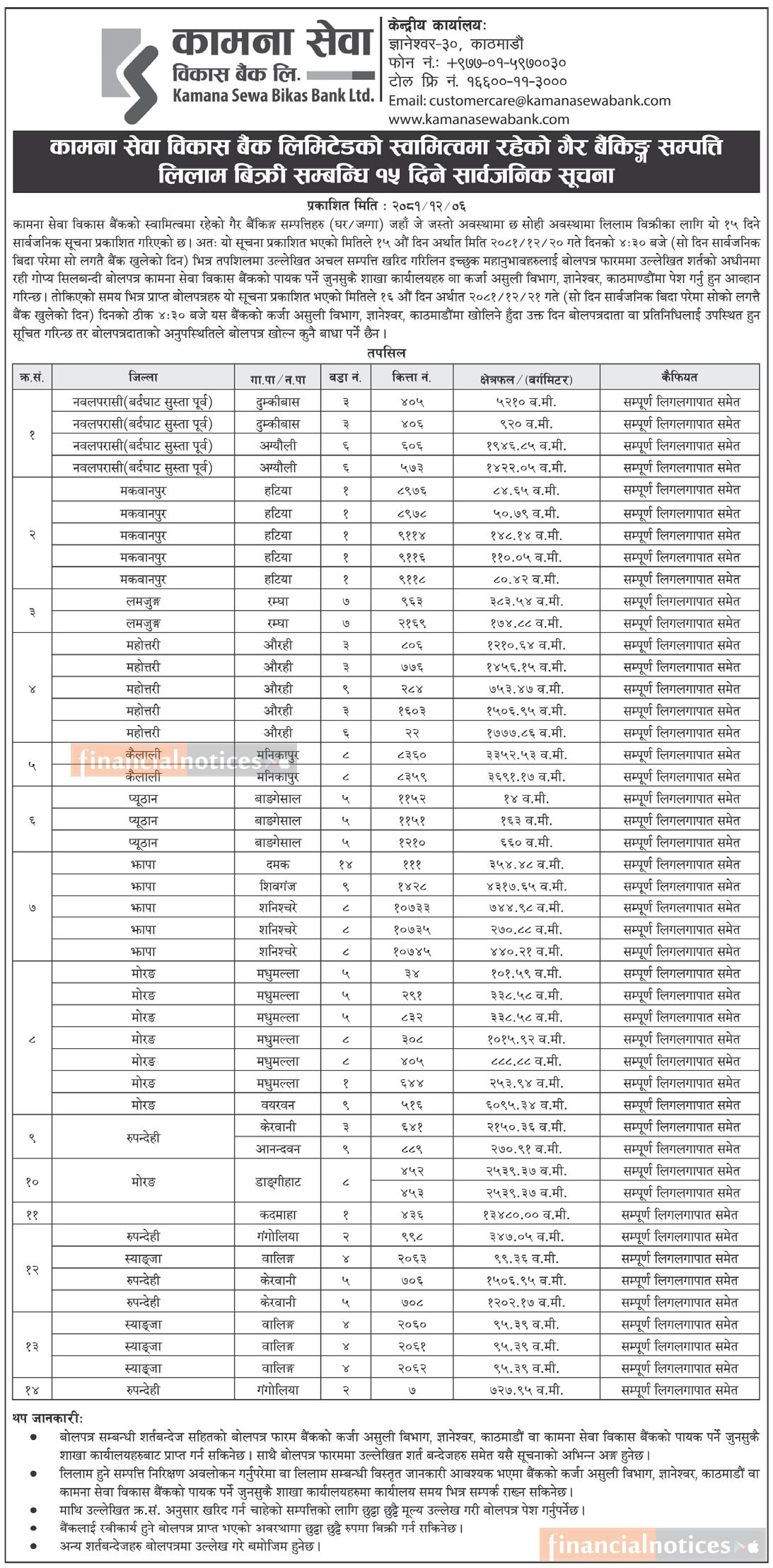 गैर बैंकिङ्ग सम्पत्ति लिलाम बिक्री सम्बन्धी १५ दिने सार्वजनिक सूचना