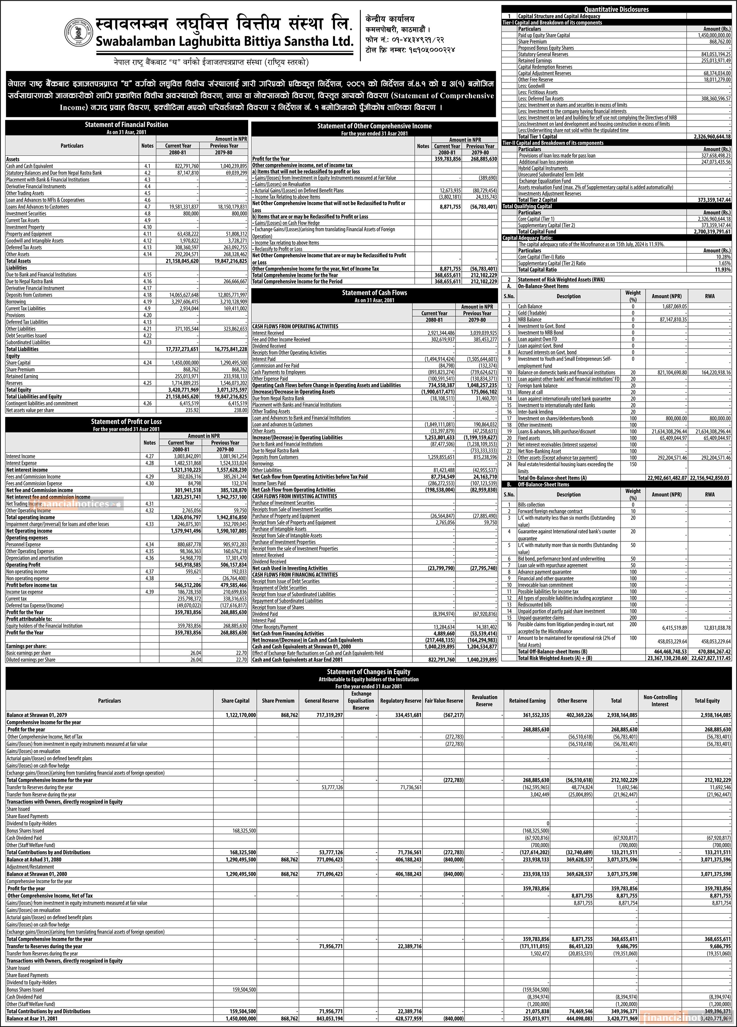 Swabalamban Laghubitta has published its annual financial statement of the fiscal year 2080/81