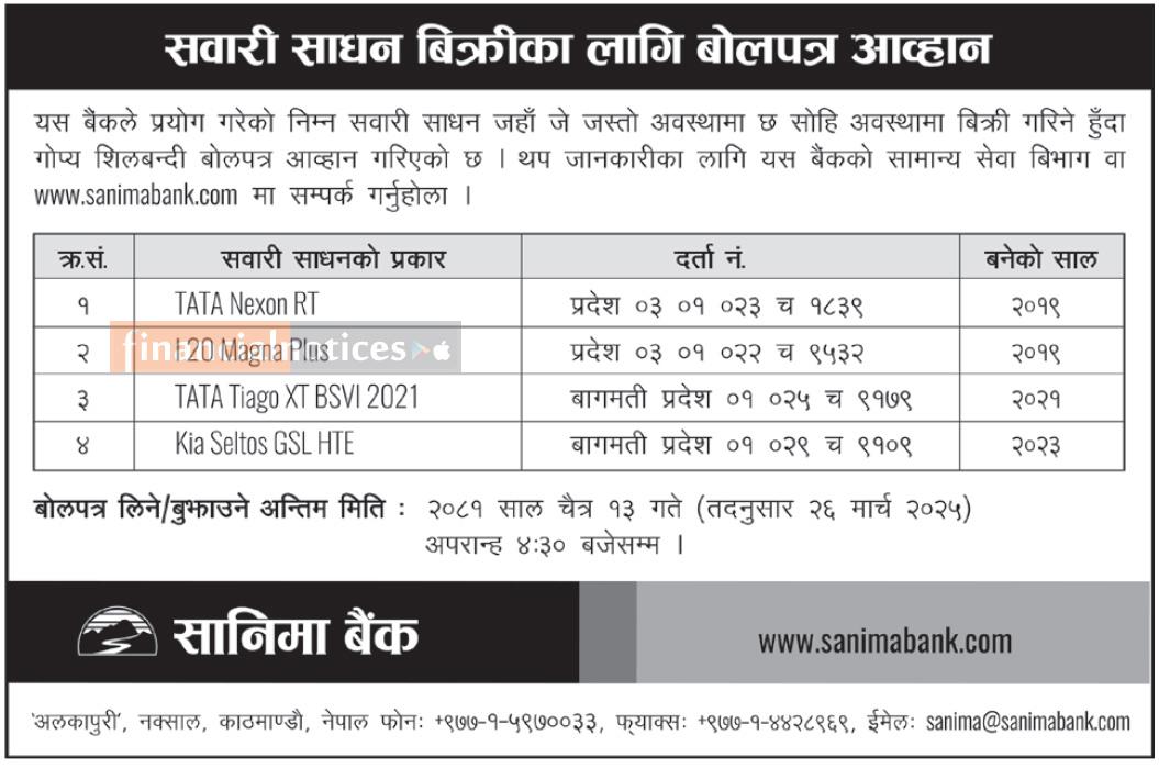 सवारी साधन बिक्रीको लागि बोलपत्र आव्हान सम्बन्धी सूचना