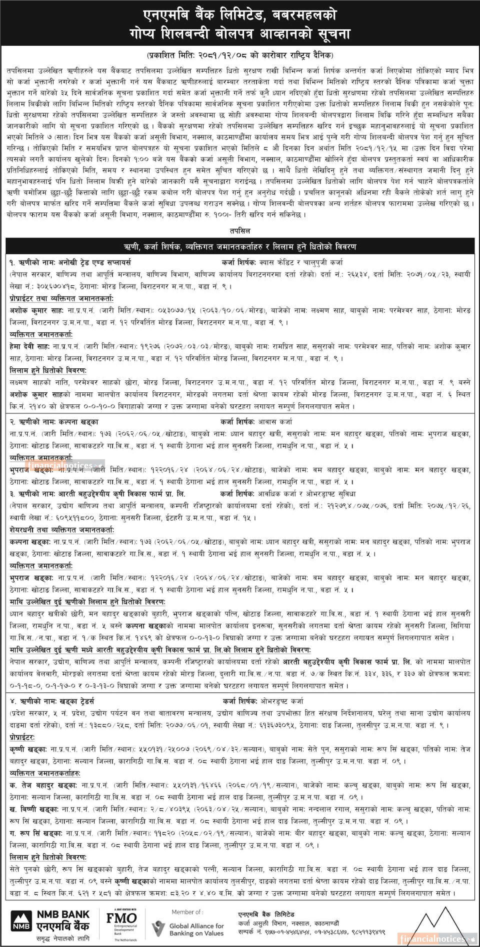 गोप्य शिलबन्दी बोलपत्र आव्हानको सूचना