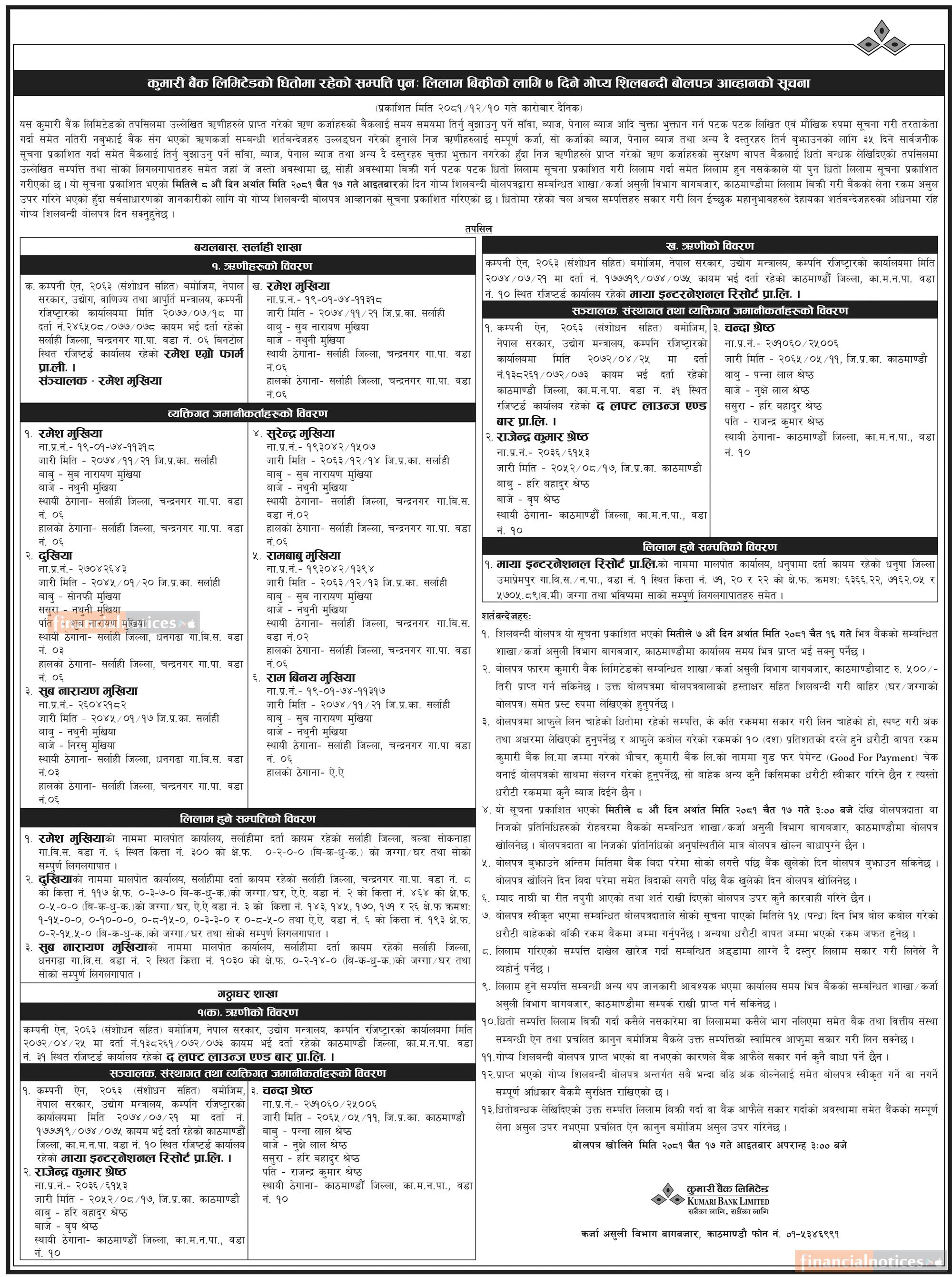 Published by Kumari Bank Ltd (KBL) on 2081-12-10
