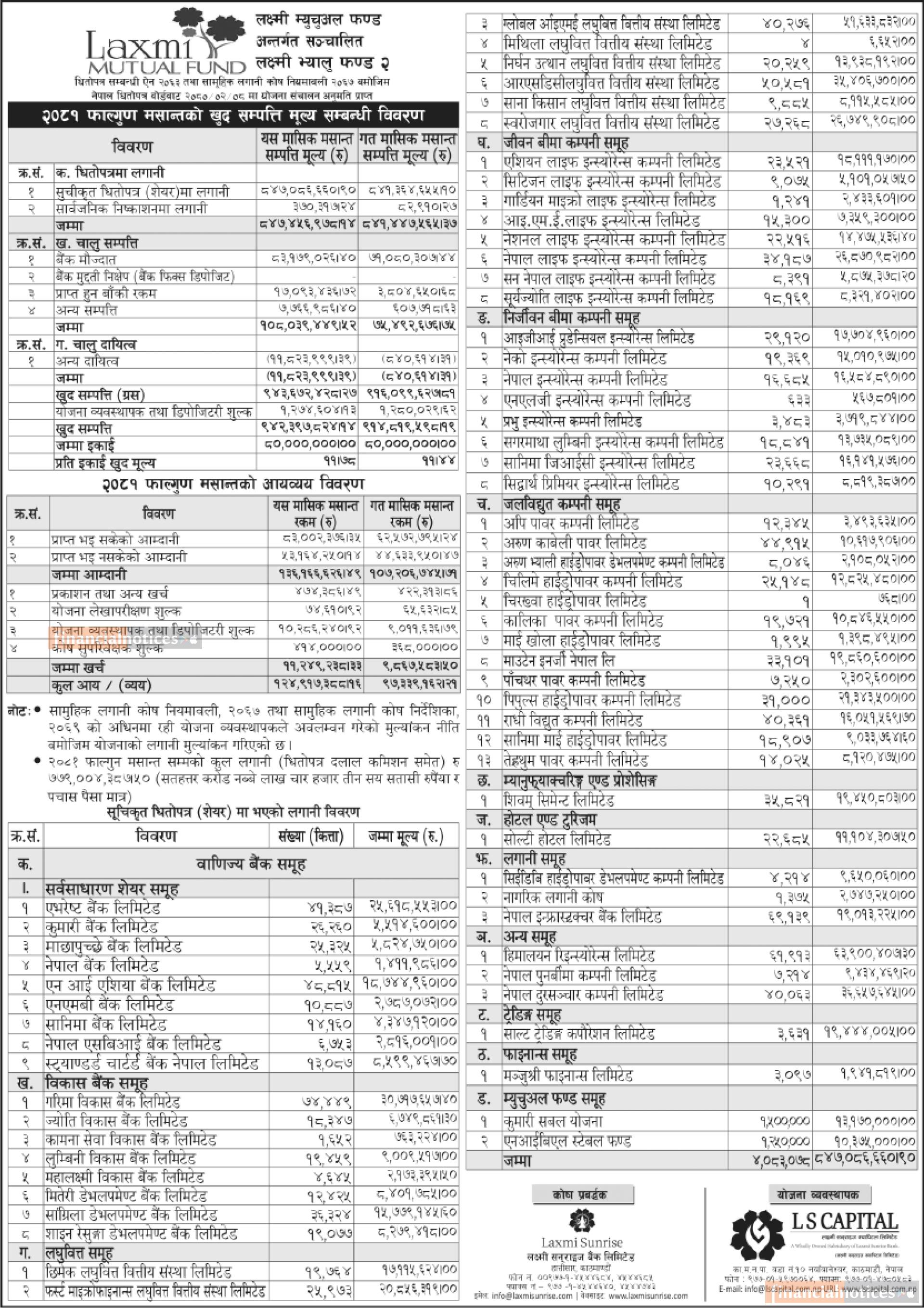 LS Capital has published the “Laxmi Value Fund-2” Net Asset Value till Falgun, 2081