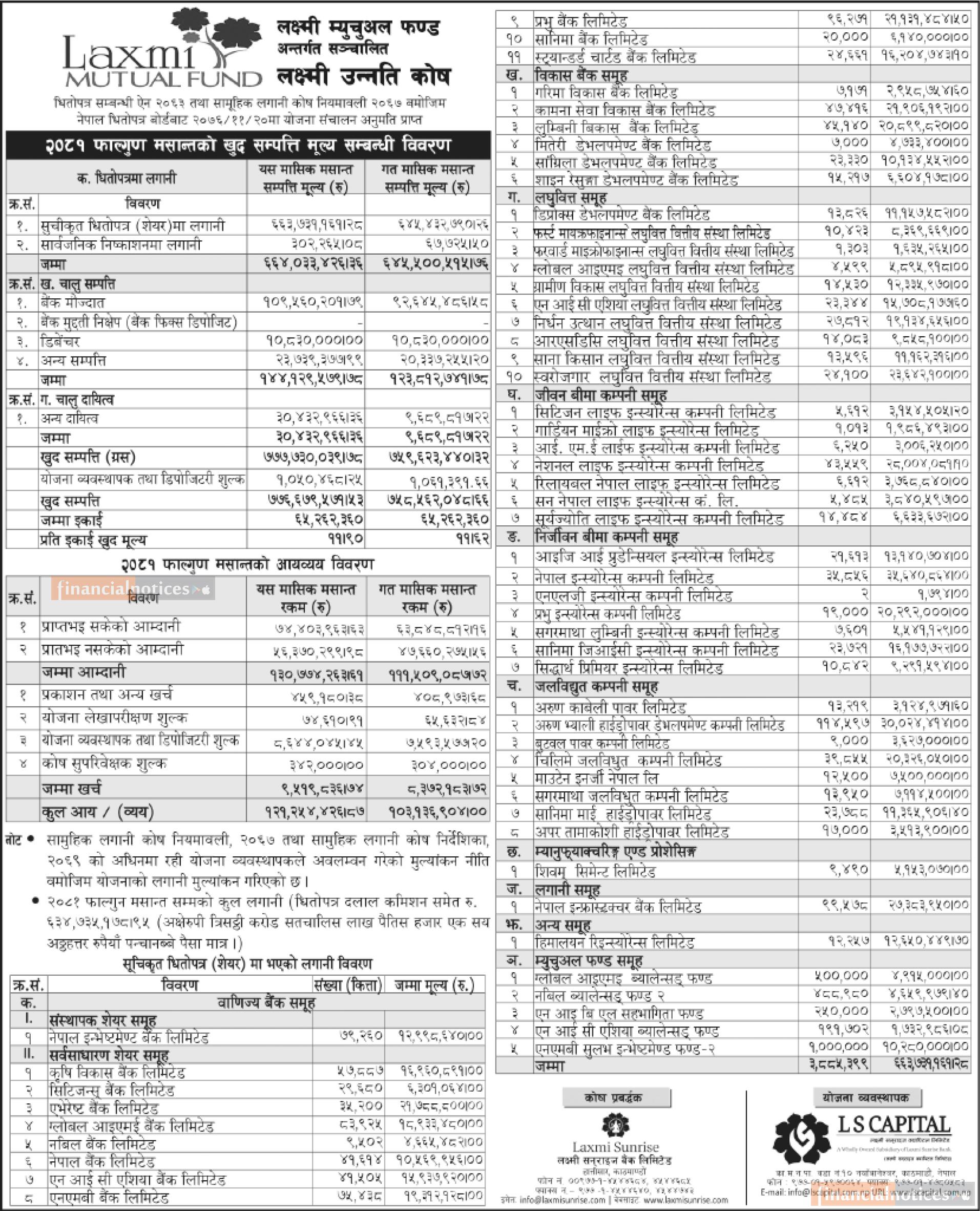 LS Capital has published the “Laxmi Unnati Kosh” Net Asset Value till Falgun, 2081