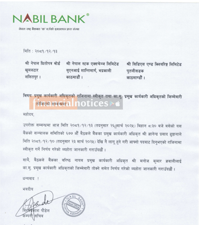This leadership transition marks a new chapter for Nabil Bank as Gyawali steps in as Acting CEO to guide the bank forward.