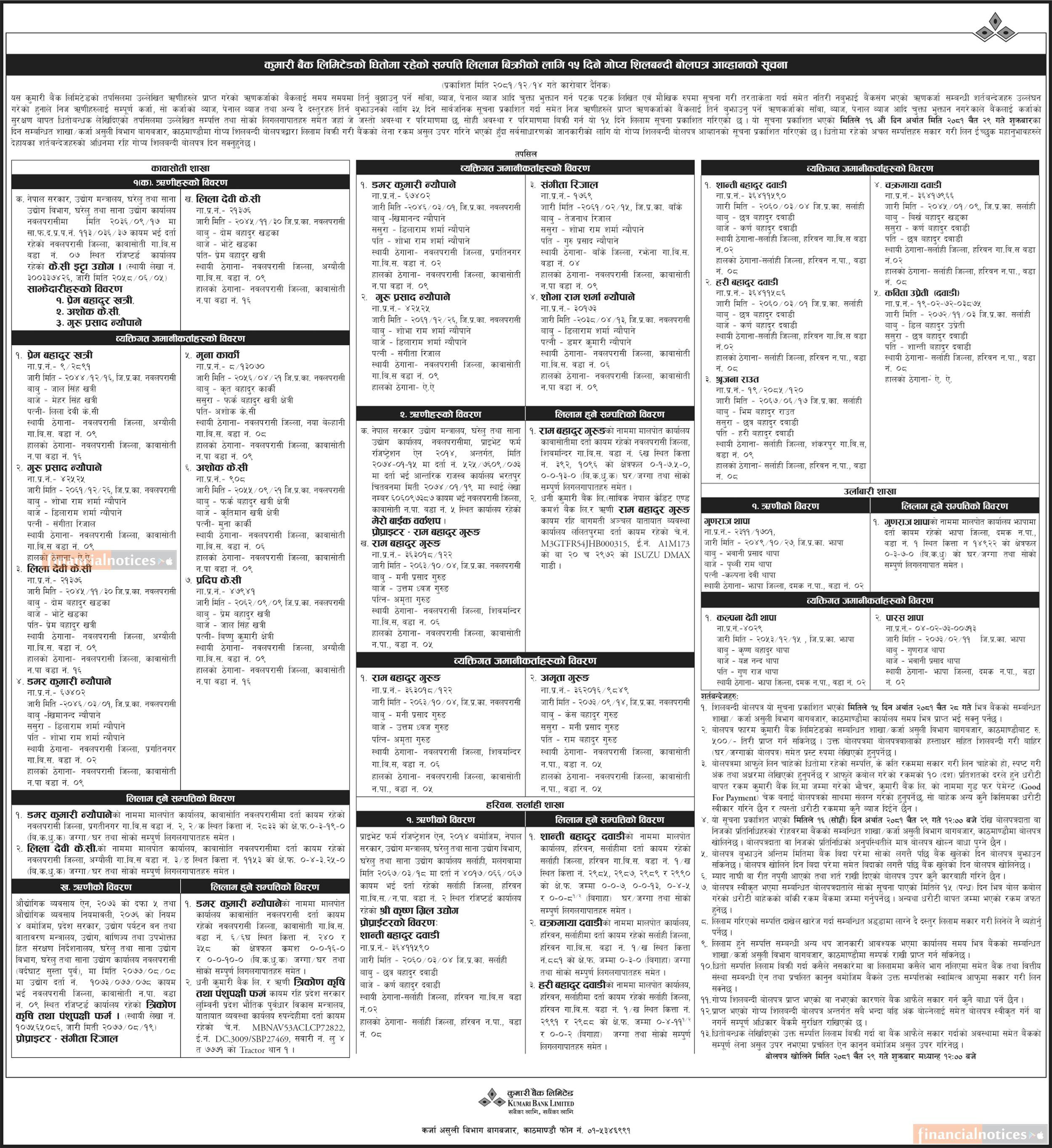 Published by Kumari Bank Ltd (KBL) on 2081-12-14