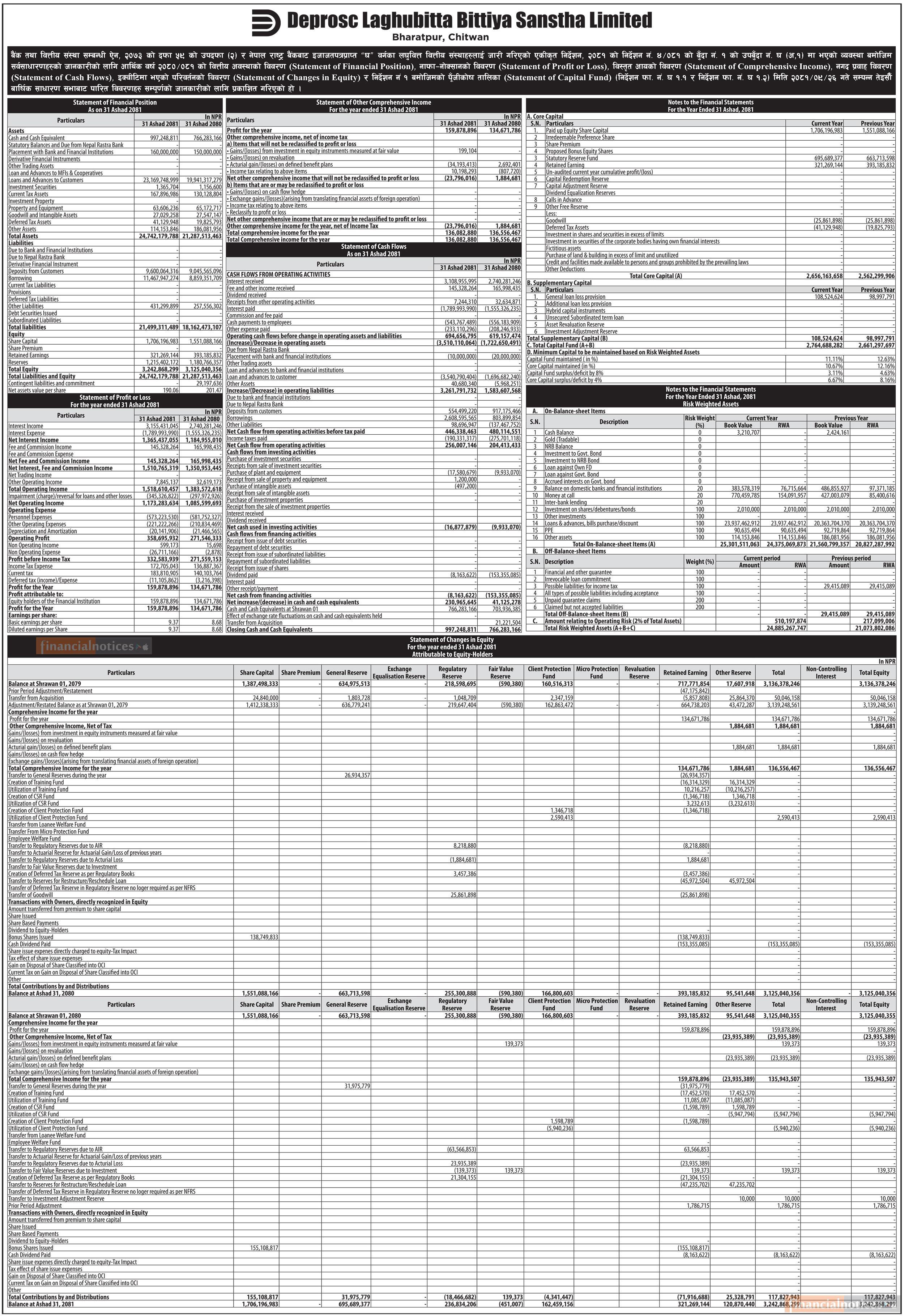 Deprosc Laghubitta has published its annual financial statement of the fiscal year 2080/81