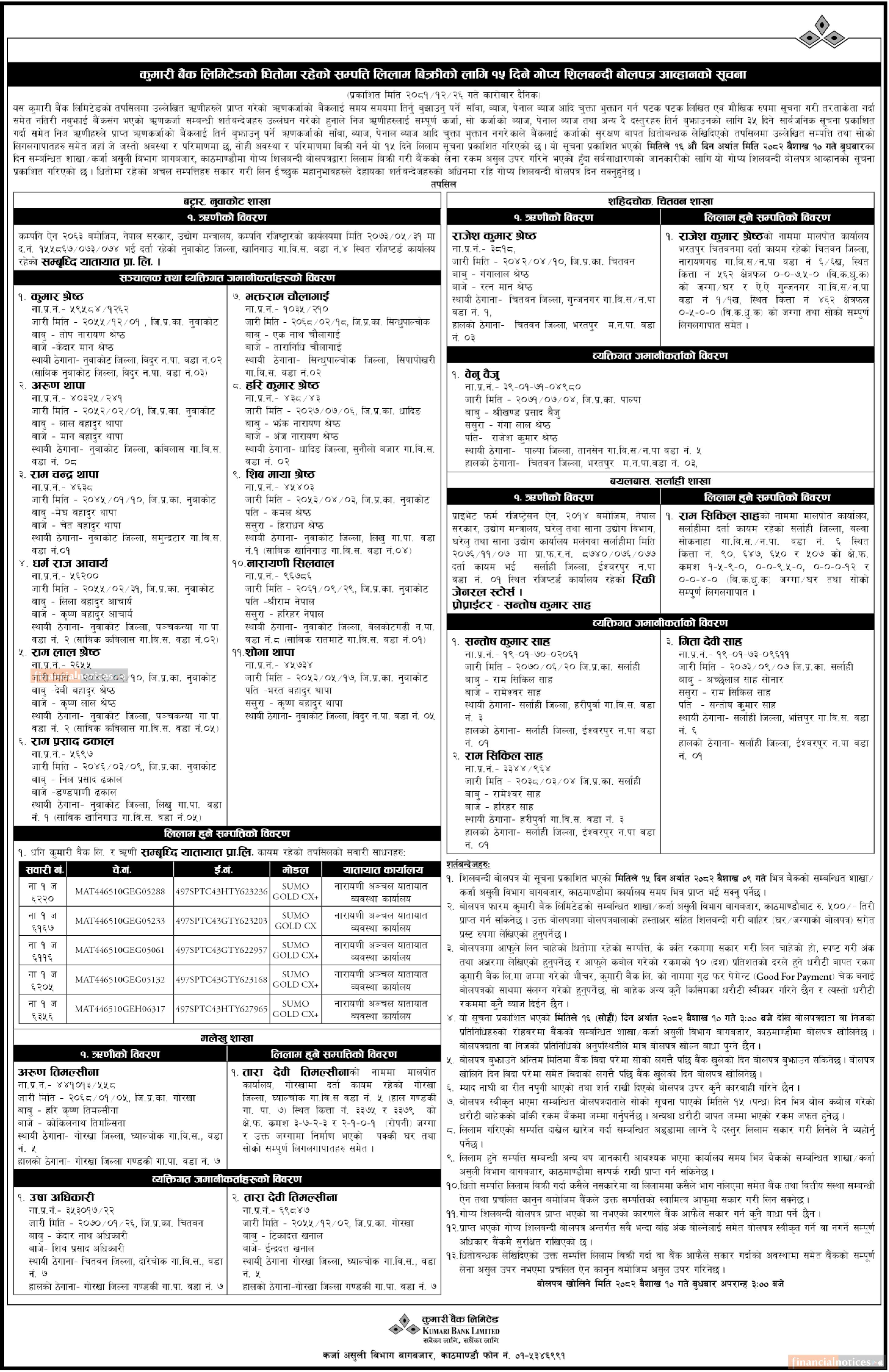Published by Kumari Bank Ltd (KBL) on 2081-12-26